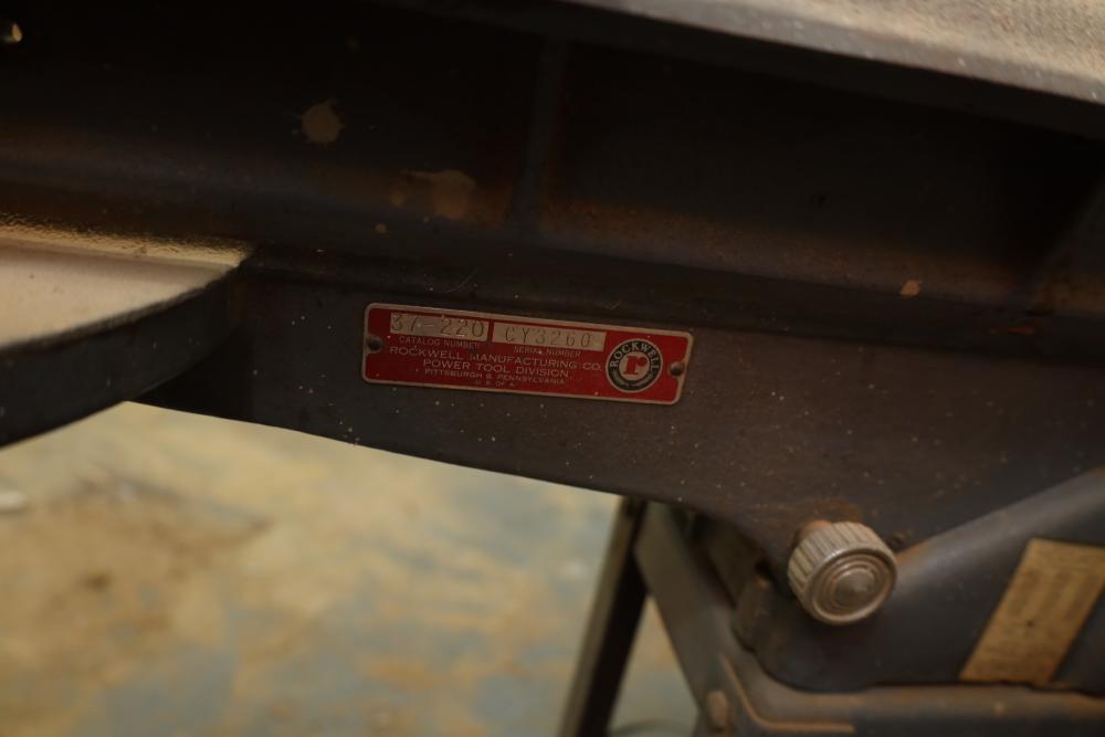 Rockwell manufacturing jointer catalog number 37-220 serial number CY3260. 48 x 14 x 39 tall. Buyer must take all. Buyer is responsible for the proper and safe removal to the first disconnect including bringing all the proper tools, equipment, supplies, and help. There will NOT be any help or equipment onsite to assist in removal.