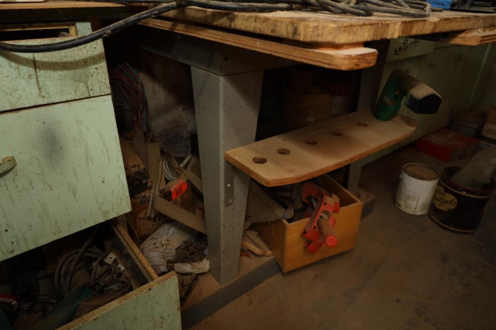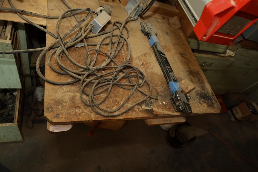 Equipment and tools including Kundig Holzher wide belt sander premium-2 1100-RK, Doucet Inc model CXprs-24 return conveyor, Ingersoll-Rand model T30 air compressor, Power roller table with Getriebebau electric motor, Mepla mat 1500 pneumatic hinge boring and inserting machine, Rockwell power tools jointer, Panto Router machine, Rockwell manufacturing jointer, Speedaire model 4YN50A 26 gallons portable air compressor, Hitachi 15" miter saw, Miller-Moorehead machinery model 310 veneer laminate slitter, Ludell machine tools five speed heavy duty drill press, and more.