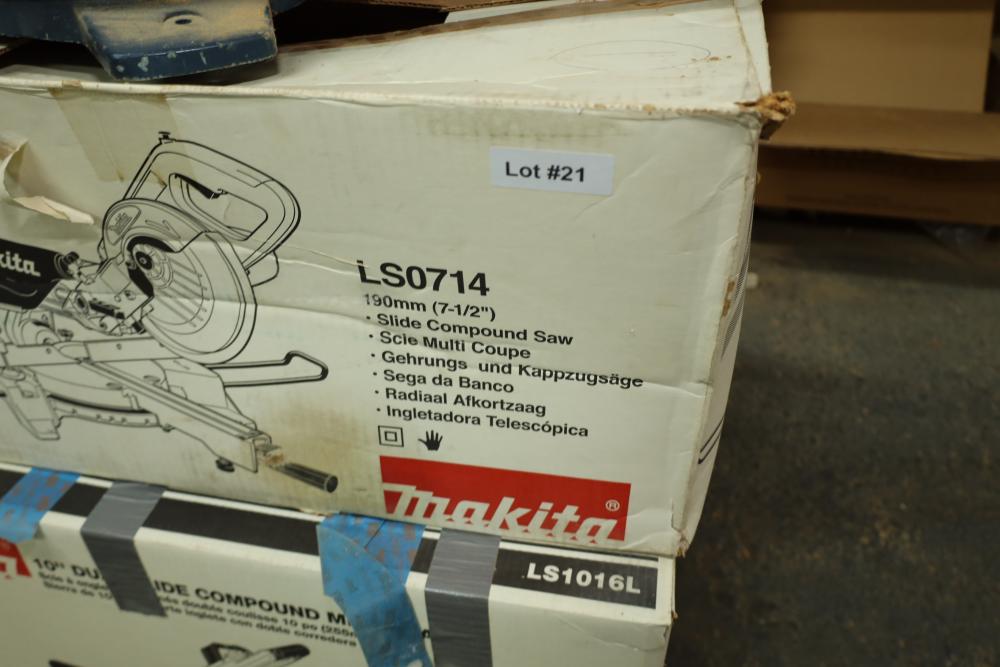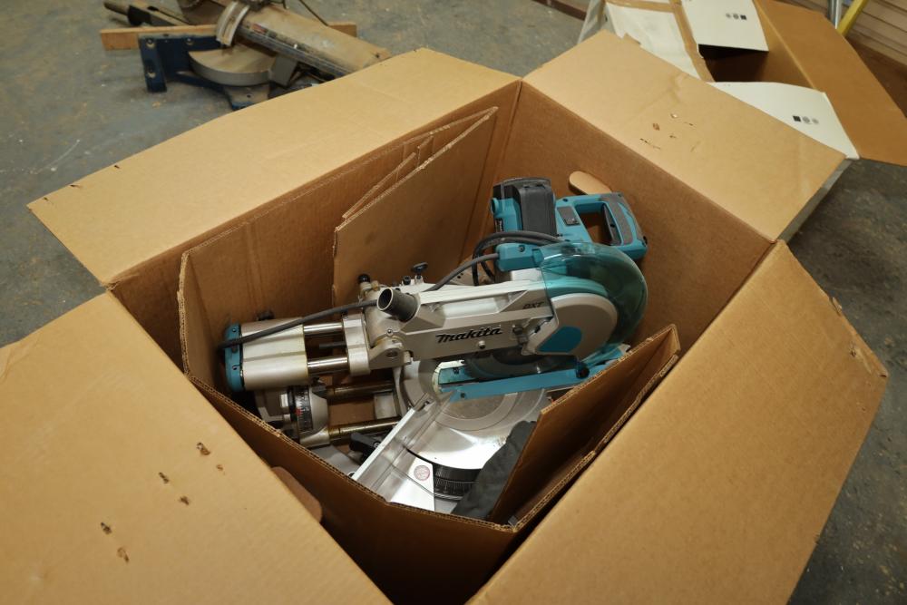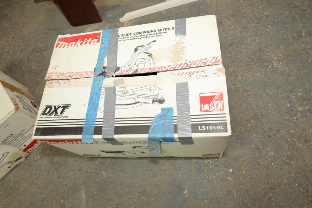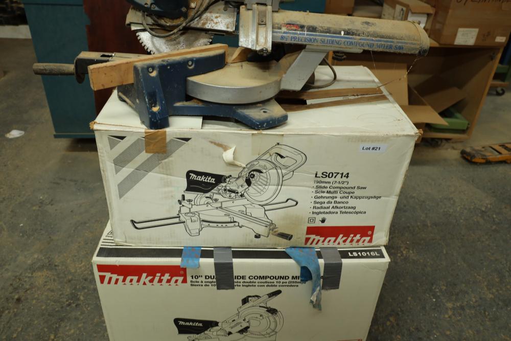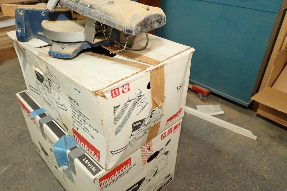 Makita 10 dual slide computer miter saw model LS1016L, Makita slide compound miter saw model LS0714, and Ryobi 8.5 precision sliding compound miter saw. All unknown if operational. Buyer must take all. Buyer is responsible for the proper and safe removal to the first disconnect including bringing all the proper tools, equipment, supplies, and help. There will NOT be any help or equipment onsite to assist in removal.