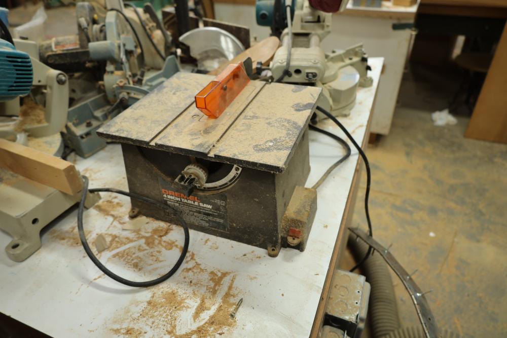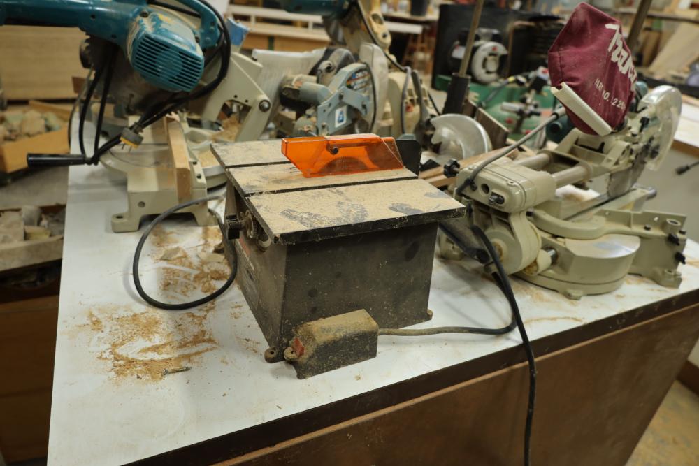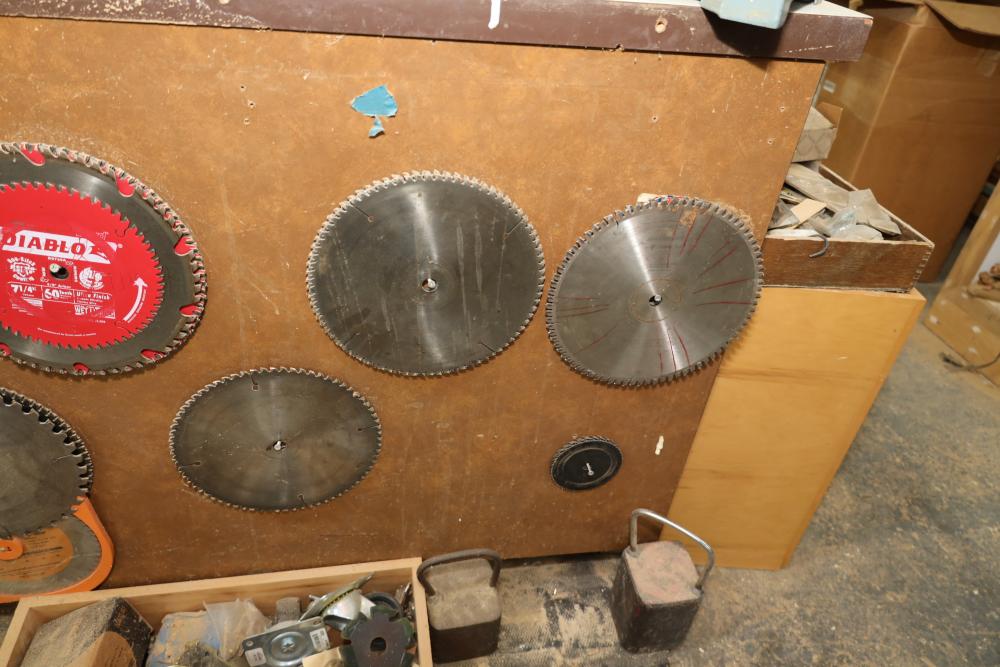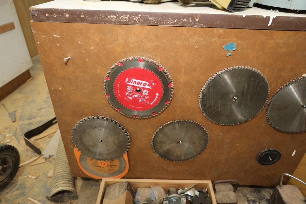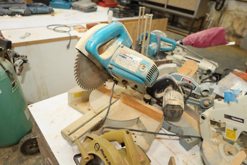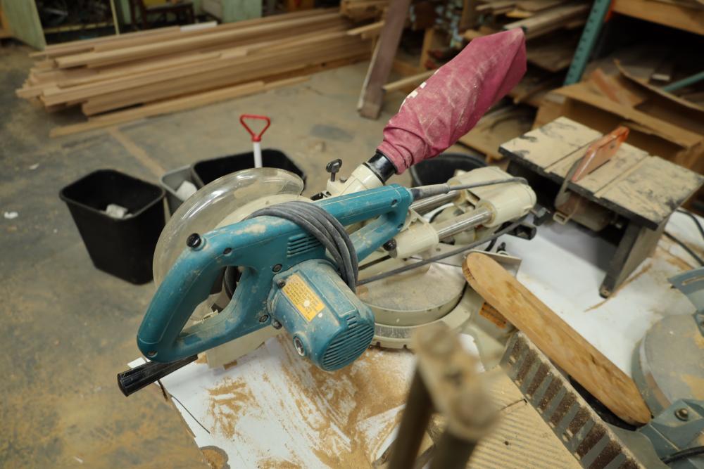 Three miter saws, two sliding miter saws, one Drexel 4 table saw, one Black and Decker circular saw, makes and models including Makita LS1011, Delta 36.040, Makita LS1030, Delta 36-040, also including assorted saw blades. All unknown if operational. Buyer must take all. Buyer is responsible for the proper and safe removal to the first disconnect including bringing all the proper tools, equipment, supplies, and help. There will NOT be any help or equipment onsite to assist in removal.