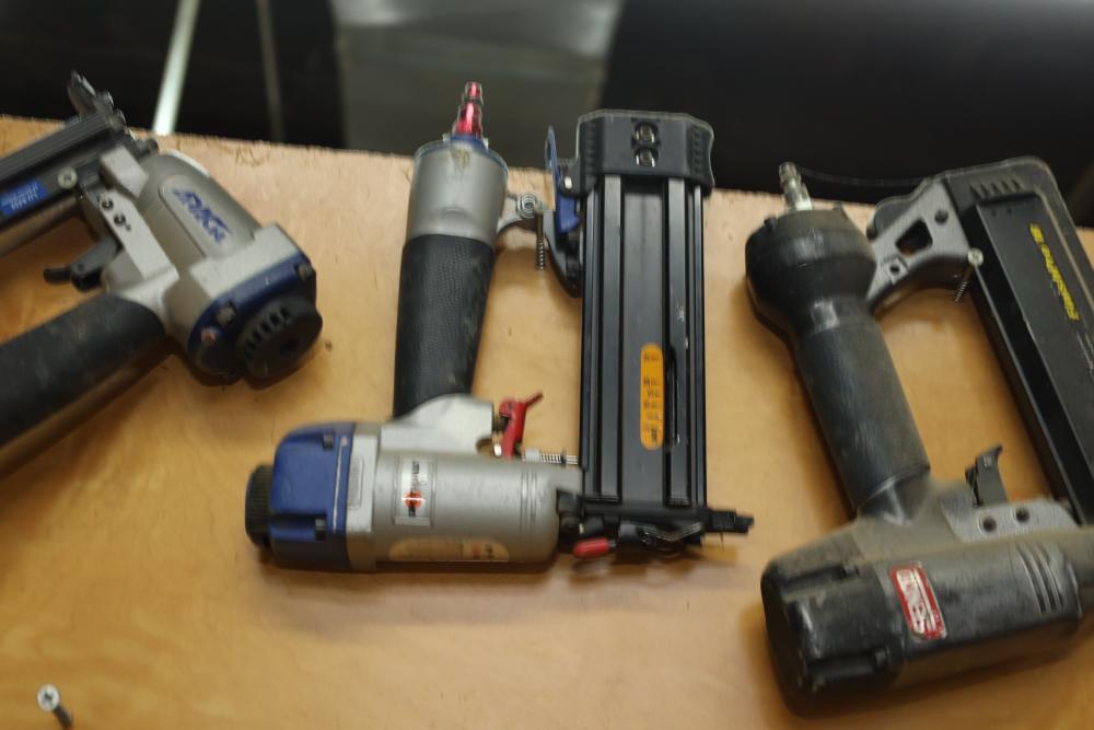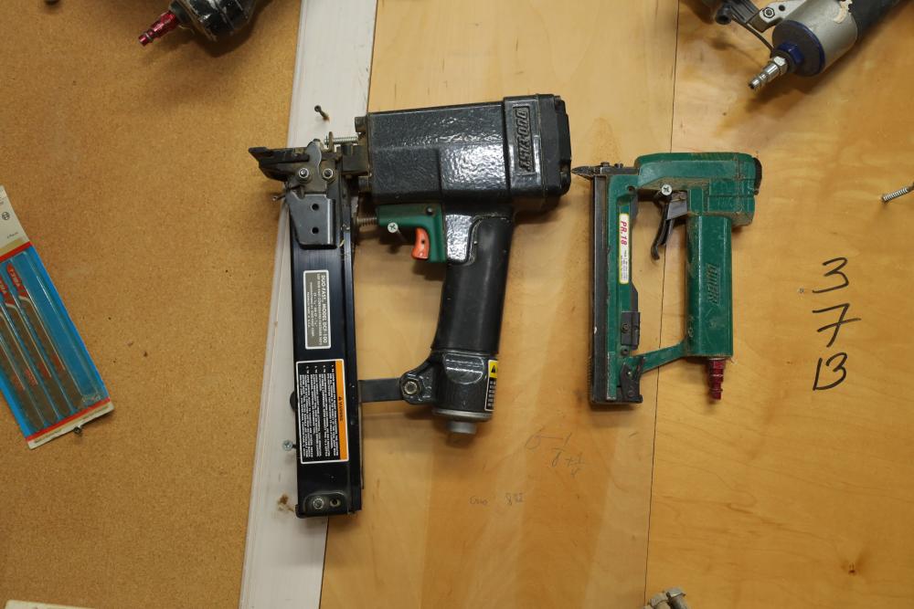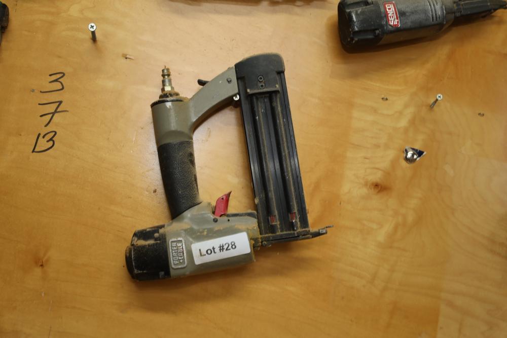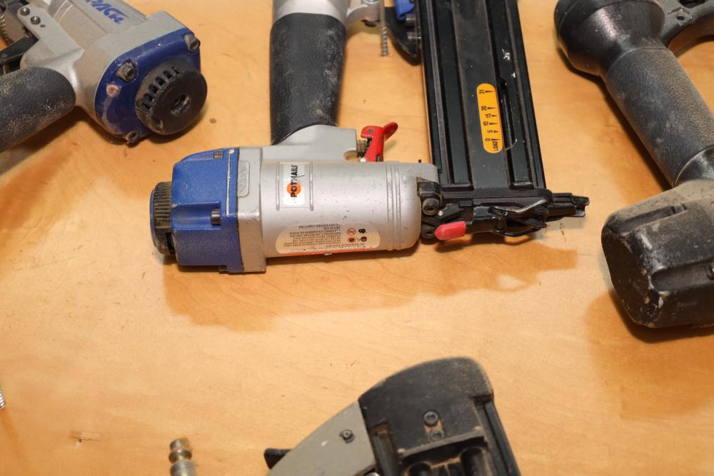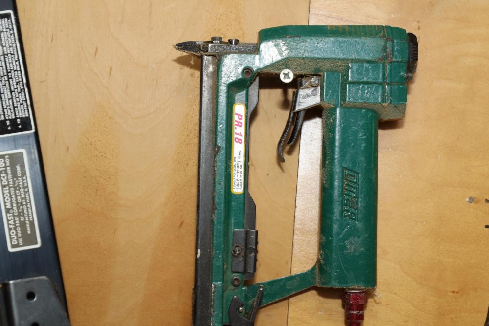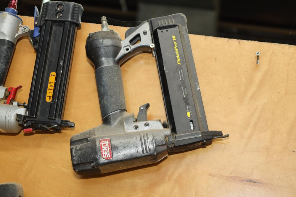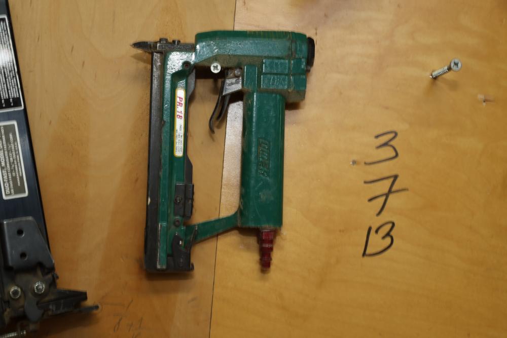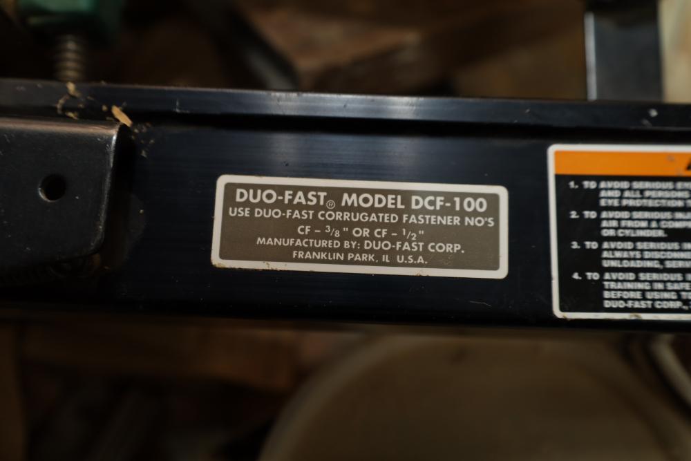 Nine pneumatic staplers and nailers including Duo-fast model DCF100, Senco, Apach LU6432, Omer PR18, Porter Cable BN200A, Senco Finish Pro 18mg, etc. All unknown if operational. Buyer must take all. Buyer is responsible for the proper and safe removal to the first disconnect including bringing all the proper tools, equipment, supplies, and help. There will NOT be any help or equipment onsite to assist in removal.