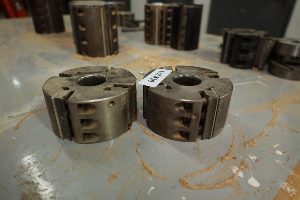 Planer shaper cutting heads numbered 503 122 03 2/7 and 3/6 approx. 4.75 dia. X 2.25 wide. Buyer must take all. Buyer is responsible for the proper and safe removal to the first disconnect including bringing all the proper tools, equipment, supplies, and help. There will NOT be any help or equipment onsite to assist in removal.