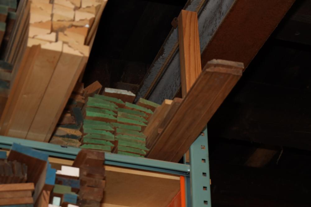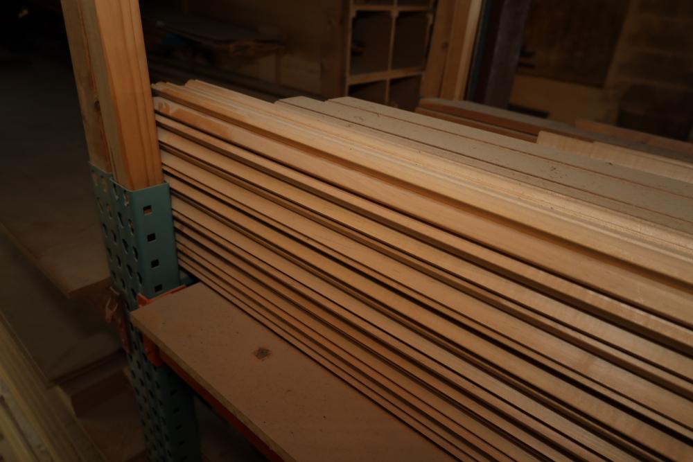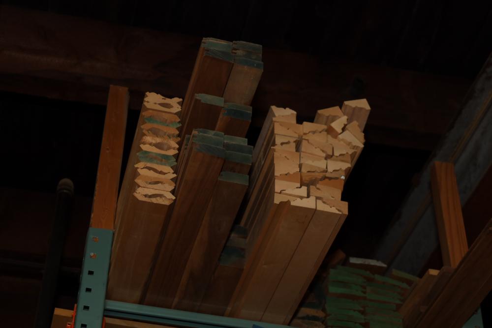 Contents of pallet shelf including various types of shaped molding. Longest piece is approx. 12' long Buyer may take as much or as little as they choose. Buyer is responsible for the proper and safe removal to the first disconnect including bringing all the proper tools, equipment, supplies, and help. There will NOT be any help or equipment onsite to assist in removal.