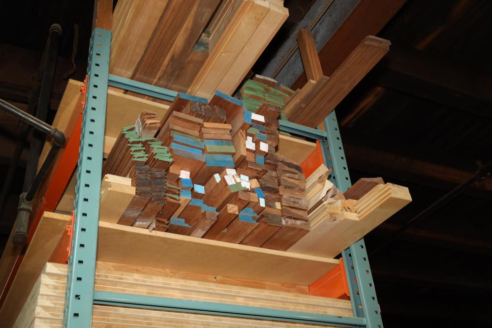 Contents of pallet shelf including various types of molding shaped, tongue and groove, etc. Longest approx. 14'. Buyer may take as much or as little as they choose. Buyer is responsible for the proper and safe removal to the first disconnect including bringing all the proper tools, equipment, supplies, and help. There will NOT be any help or equipment onsite to assist in removal.