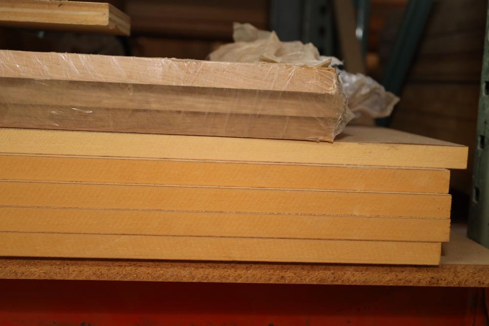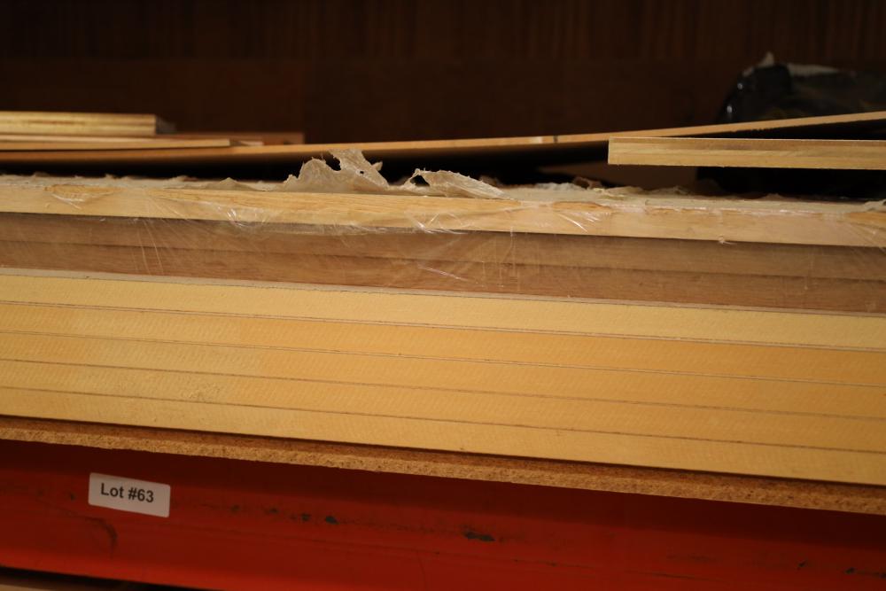 Contents of pallet shelf including ultra light MDF 4'x8'x.75. 5 pieces total also including three boards largest being 11.25x8'x.75 thick and assorted other scrap stock. Buyer must take all. Buyer is responsible for the proper and safe removal to the first disconnect including bringing all the proper tools, equipment, supplies, and help. There will NOT be any help or equipment onsite to assist in removal.
