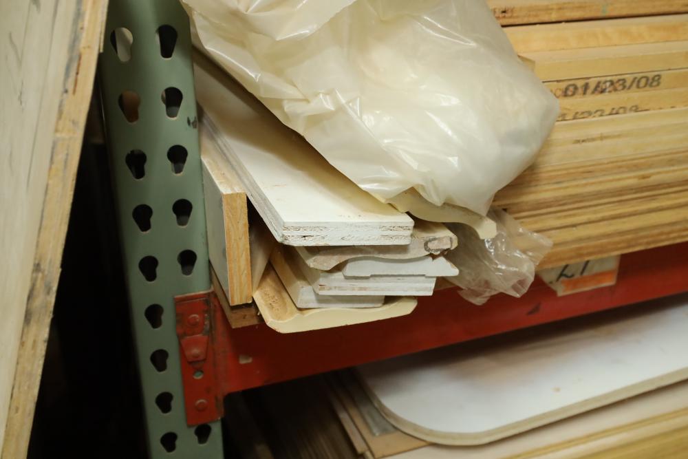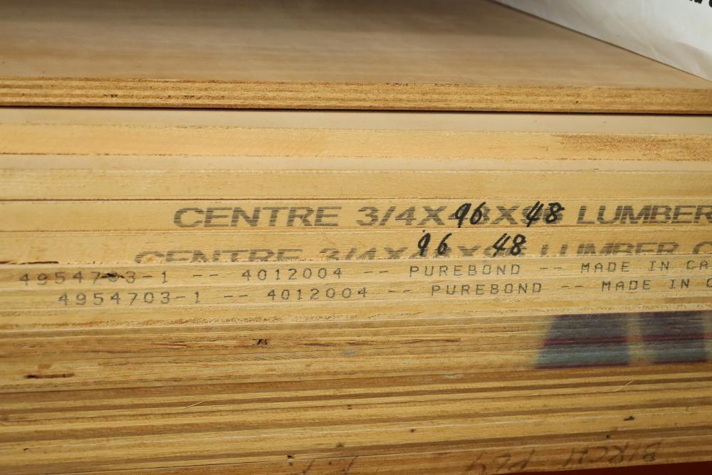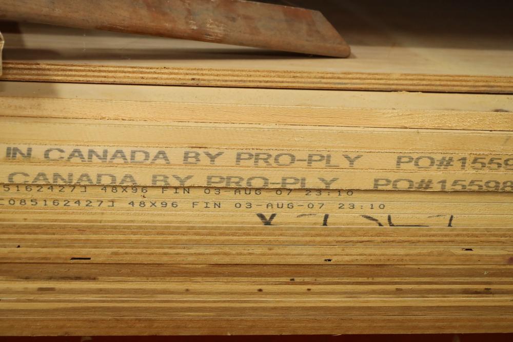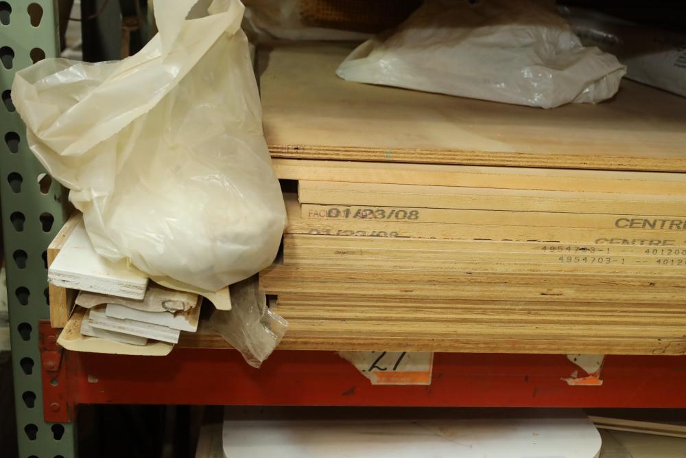 Contents of pallet shelf including plywood and lumber core, most pieces 4'x8'x .75 thick. Approx 14 sheets total, also includes other assorted trim board and items. Buyer must take all. Buyer is responsible for the proper and safe removal to the first disconnect including bringing all the proper tools, equipment, supplies, and help. There will NOT be any help or equipment onsite to assist in removal.
