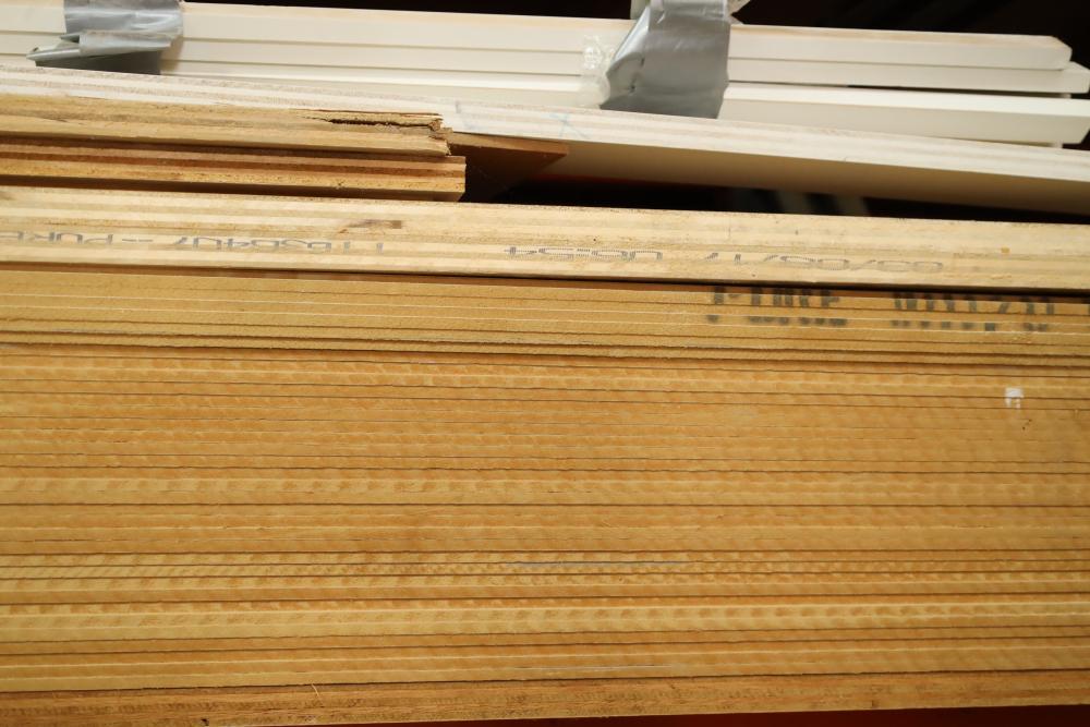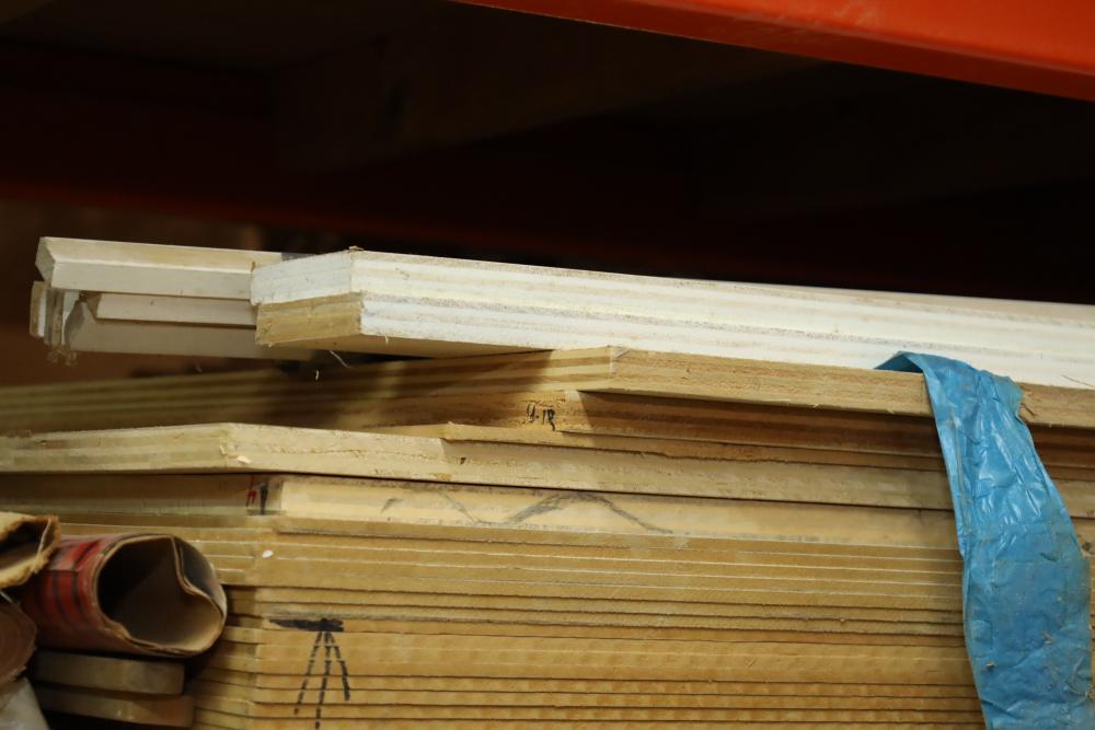 Contents of pallet shelf including MDF and plywood most sheets 4'x8'. Approx 34 pieces of MDF and two sheets of plywood. Buyer must take all. Buyer is responsible for the proper and safe removal to the first disconnect including bringing all the proper tools, equipment, supplies, and help. There will NOT be any help or equipment onsite to assist in removal.