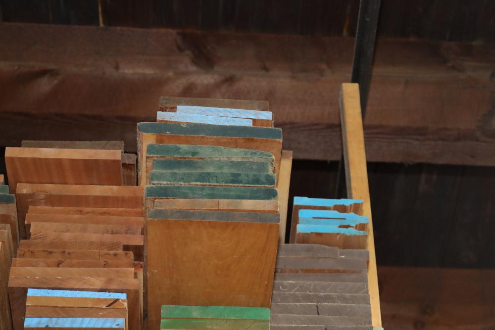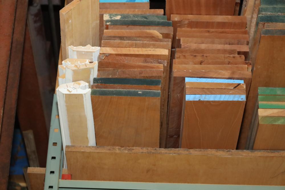 Contents of top pallet shelf including assorted wood board planks largest approx. 8.5 x 12' x .75 thick. Buyer must take all. Buyer is responsible for the proper and safe removal to the first disconnect including bringing all the proper tools, equipment, supplies, and help. There will NOT be any help or equipment onsite to assist in removal.