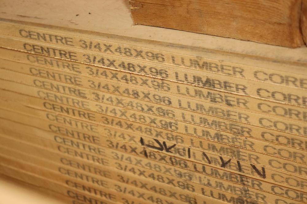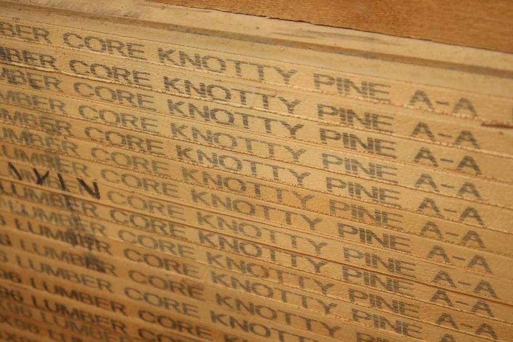 Contents of pallet shelf including centre lumber core knotty pine. 4'x8'x.75. Over 35 pieces total. Buyer must take all. Buyer is responsible for the proper and safe removal to the first disconnect including bringing all the proper tools, equipment, supplies, and help. There will NOT be any help or equipment onsite to assist in removal.