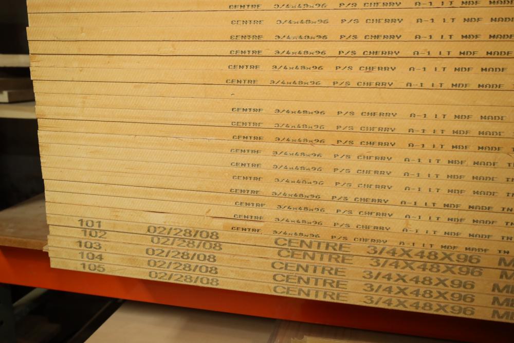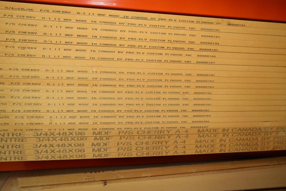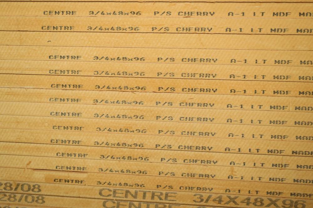 Contents of pallet shelf including MDF P/S cherry. 4'x8'x.75. 23 pieces in total. Buyer must take all. Buyer is responsible for the proper and safe removal to the first disconnect including bringing all the proper tools, equipment, supplies, and help. There will NOT be any help or equipment onsite to assist in removal.