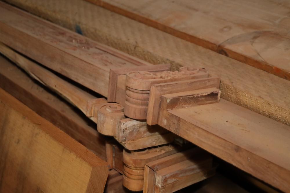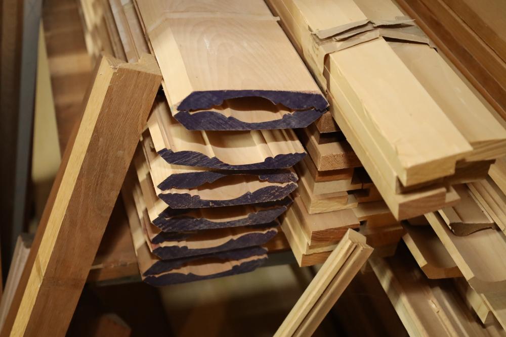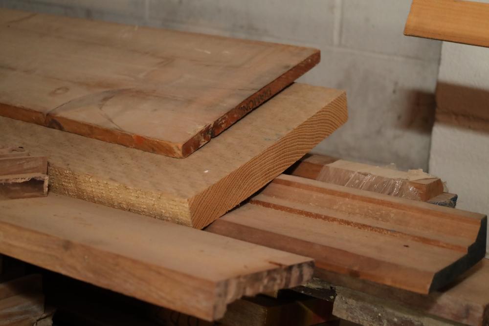 Contents of top two pallet shelves including molding, lumber, 11 wide boards, 4x4's, longest piece approx. 14'. Buyer may take as much or as little as they choose. Buyer is responsible for the proper and safe removal to the first disconnect including bringing all the proper tools, equipment, supplies, and help. There will NOT be any help or equipment onsite to assist in removal.