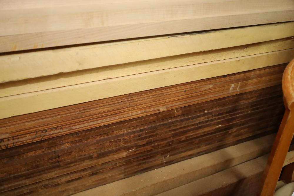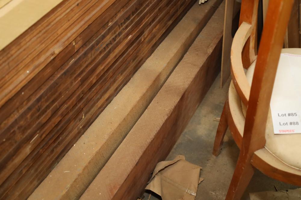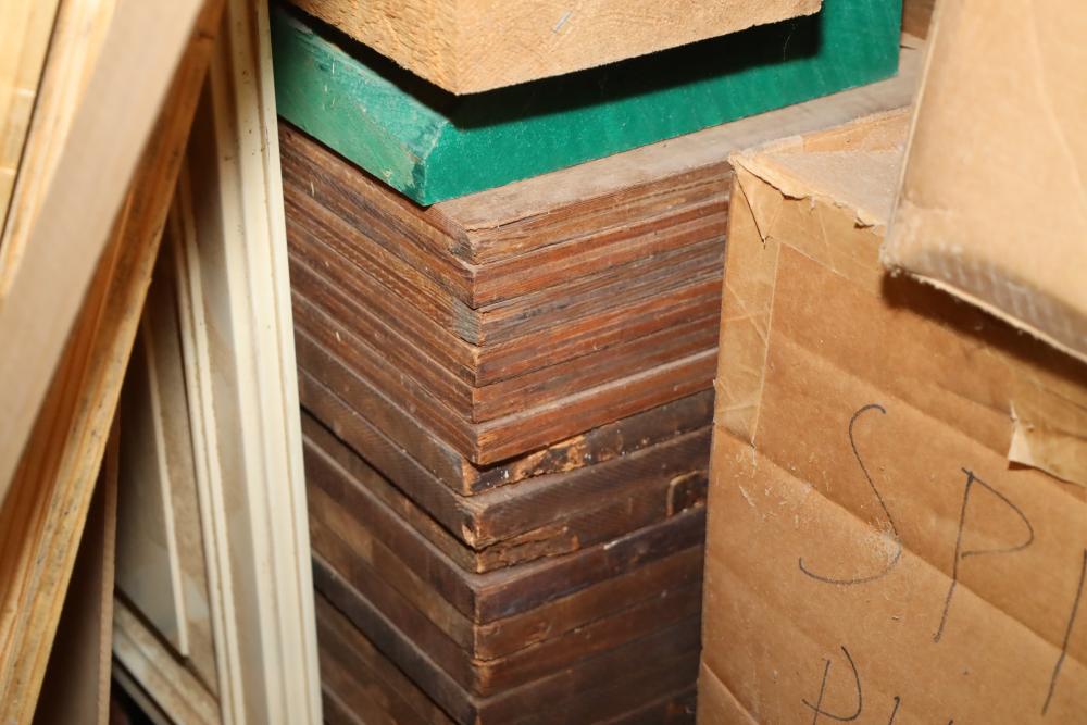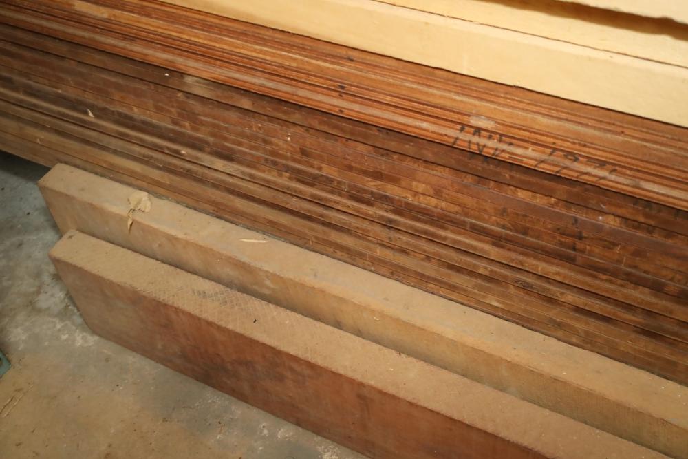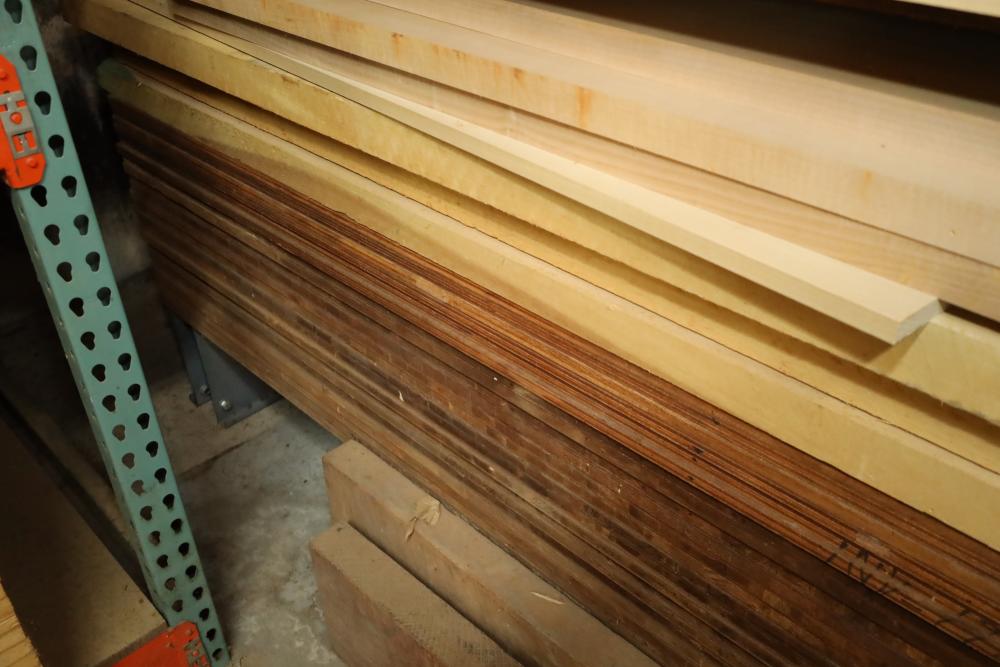 Bottom shelf of pallet rack including plywood, lumber, boards. Plywood approx. 12'x4'x1/2 thick. Thickest lumber 2.75. Buyer must take all. Buyer is responsible for the proper and safe removal to the first disconnect including bringing all the proper tools, equipment, supplies, and help. There will NOT be any help or equipment onsite to assist in removal.
