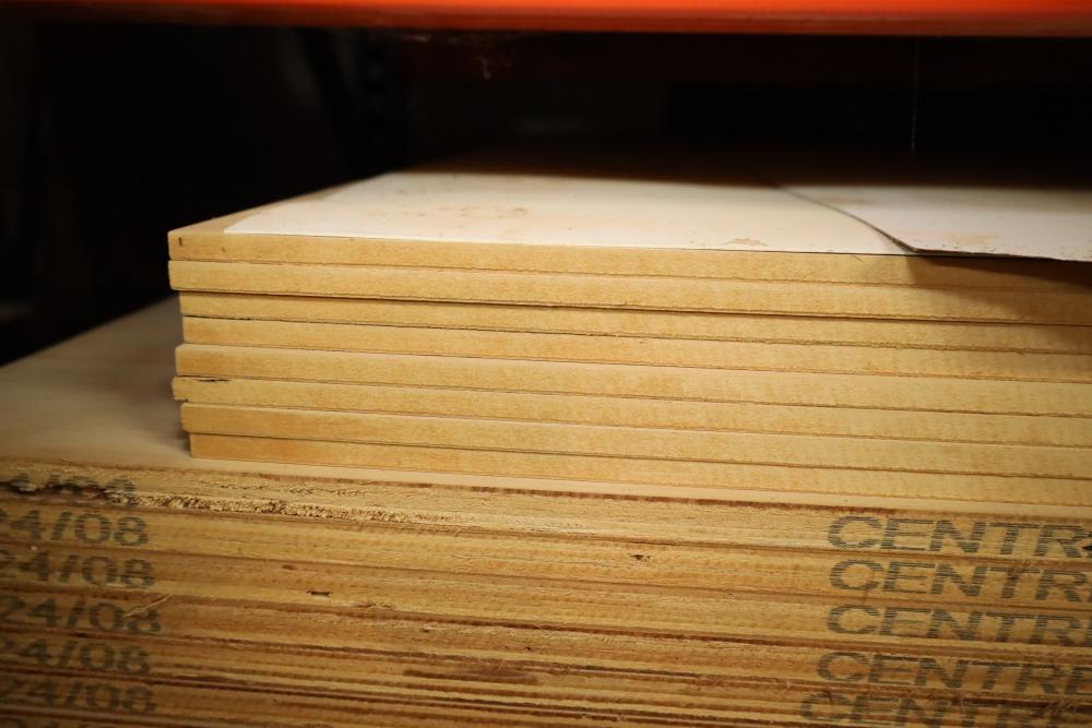 Contents of pallet shelf including 16 pieces of 4'x10'x.75 plywood and 8 pieces of 4'x9.5'x3/8 MDF. Buyer must take all. Buyer is responsible for the proper and safe removal to the first disconnect including bringing all the proper tools, equipment, supplies, and help. There will NOT be any help or equipment onsite to assist in removal.