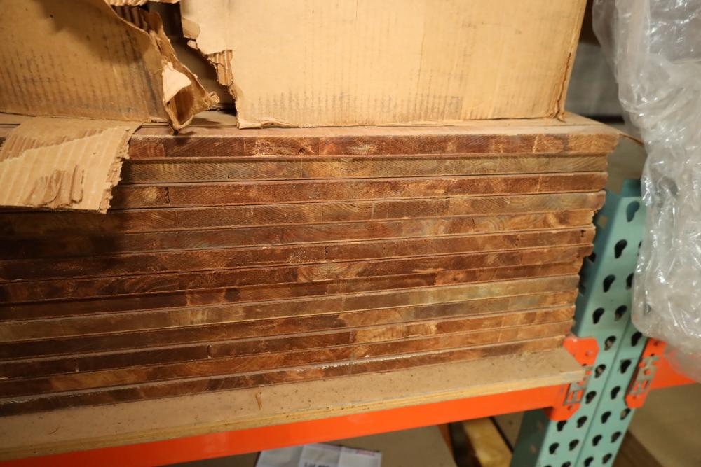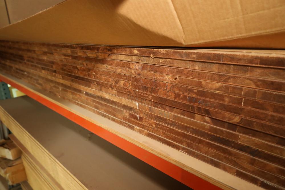 Contents of top two pallet shelves including 10 sheets of 4'x10'x3/4 VC Honduras Mahogany plywood, anti tarnish silver cloth cotton, 13 Buyer must take all. Buyer is responsible for the proper and safe removal to the first disconnect including bringing all the proper tools, equipment, supplies, and help. There will NOT be any help or equipment onsite to assist in removal.