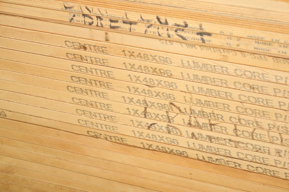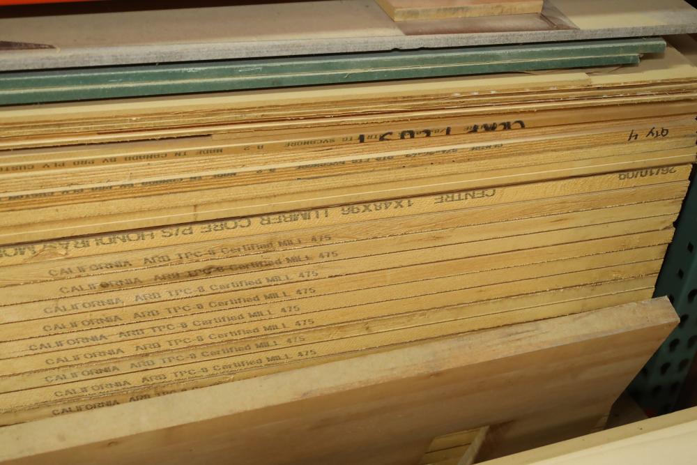 Contents of bottom shelf of pallet rack including lumber core 4'x8'x1, plywood 4'x8'x.75 and assorted other stock. Over 20 pieces total. Buyer must take all. Buyer is responsible for the proper and safe removal to the first disconnect including bringing all the proper tools, equipment, supplies, and help. There will NOT be any help or equipment onsite to assist in removal.