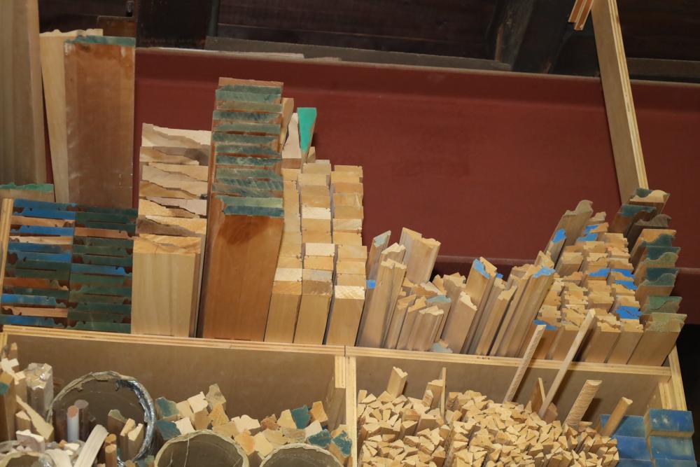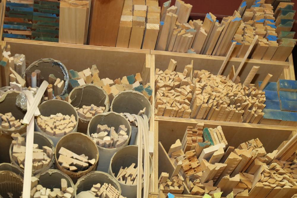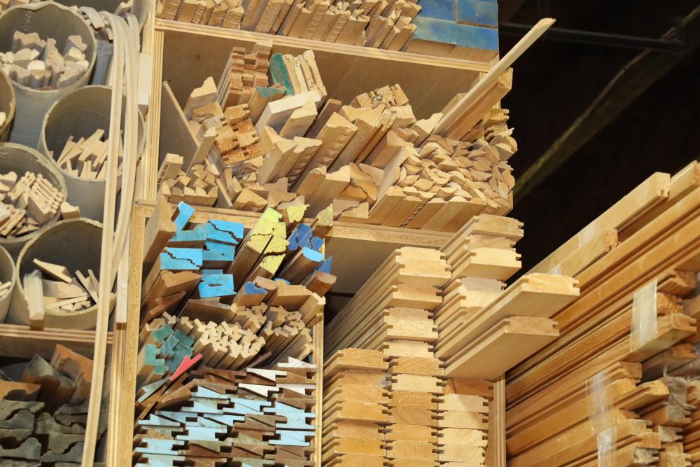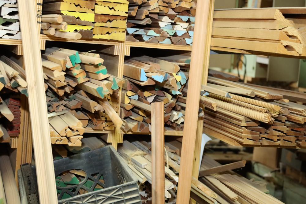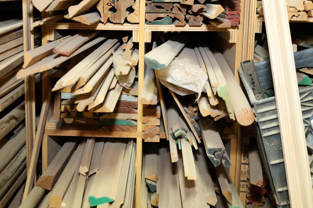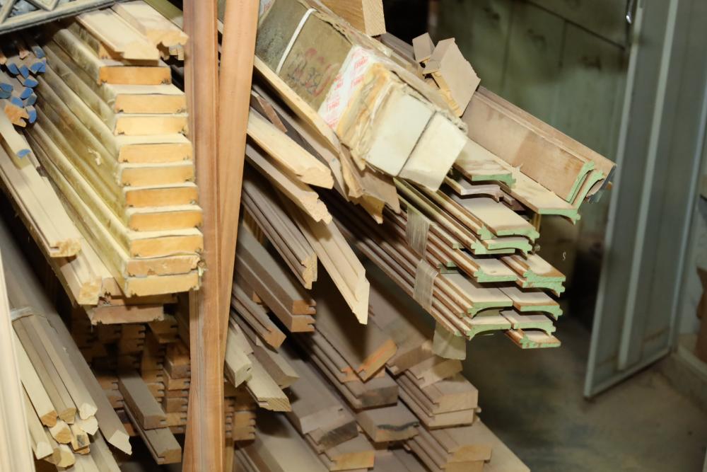 Remaining contents of molding shelving including trim, molding, decorative pieces, etc. Longest piece is approx. 14' long. Buyer may take as much or as little as they choose. Buyer is responsible for the proper and safe removal to the first disconnect including bringing all the proper tools, equipment, supplies, and help. There will NOT be any help or equipment onsite to assist in removal.