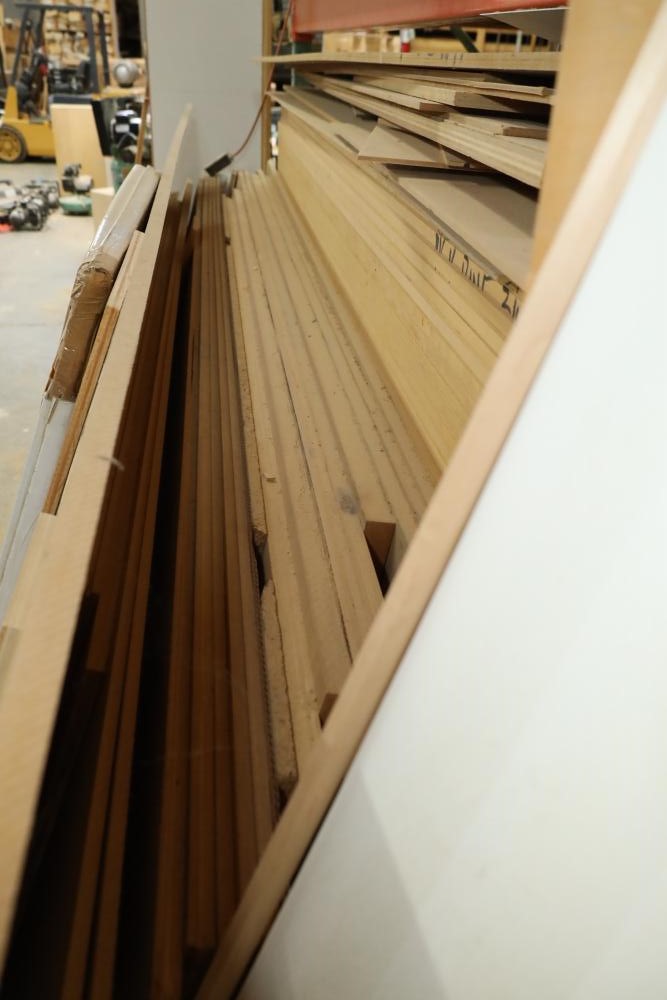 Select items in front of pallet rack including plywood, MDF, boards, etc. Thickest piece 1.25, sheets range from 4'x8' to 4'x10. Buyer must take all. Buyer is responsible for the proper and safe removal to the first disconnect including bringing all the proper tools, equipment, supplies, and help. There will NOT be any help or equipment onsite to assist in removal.