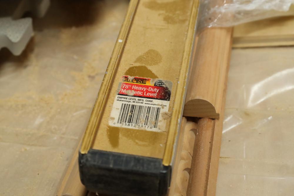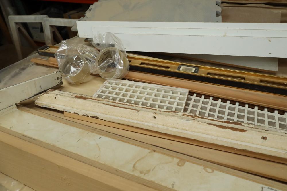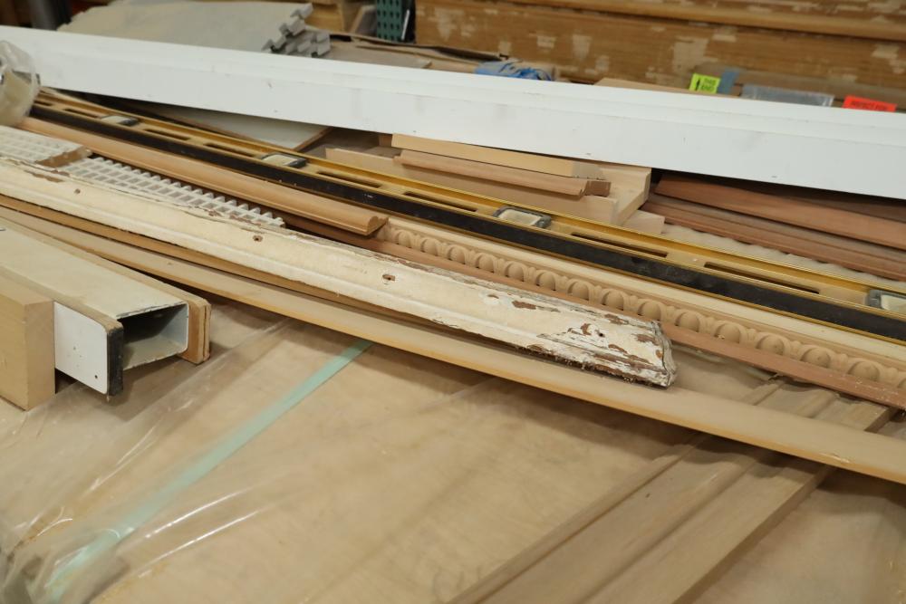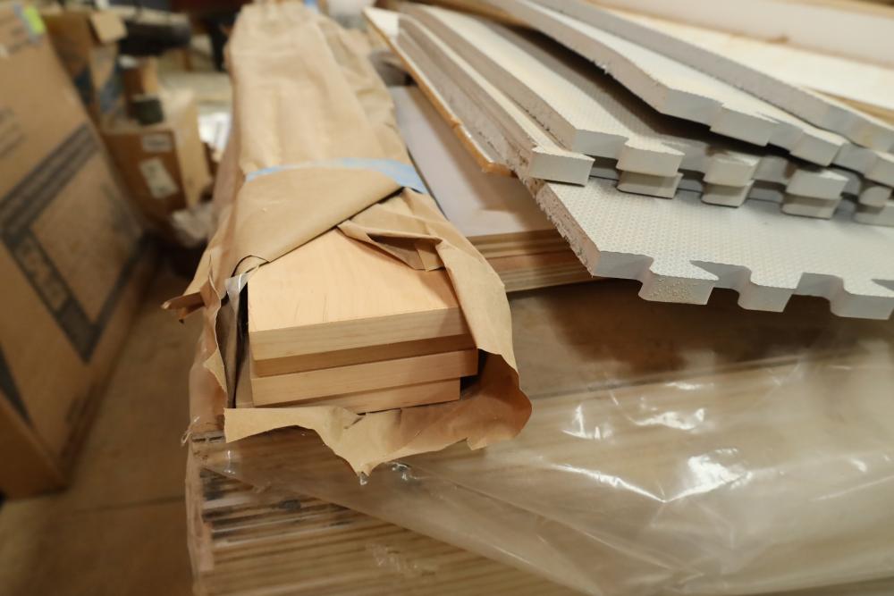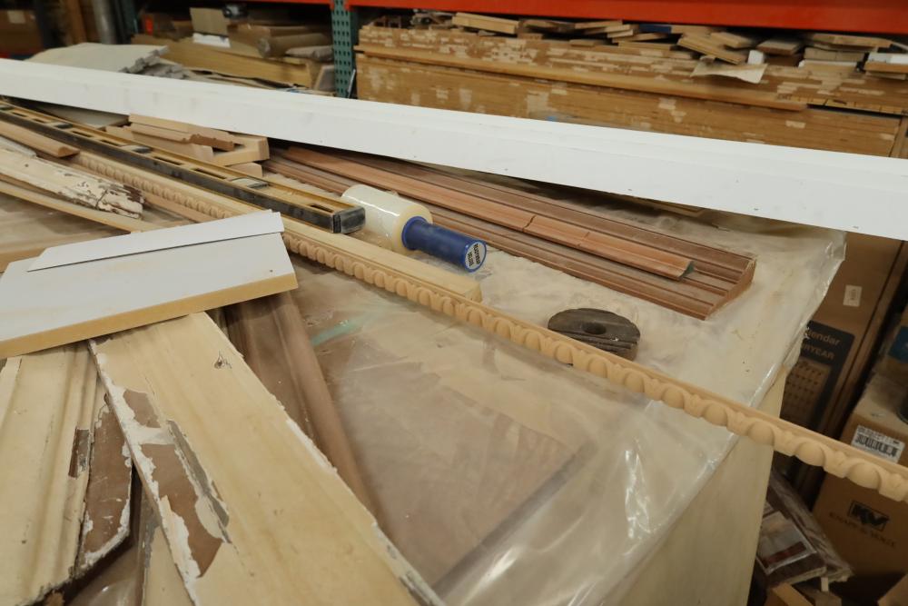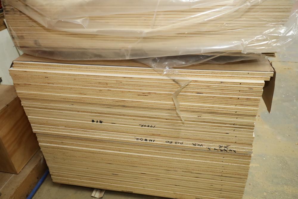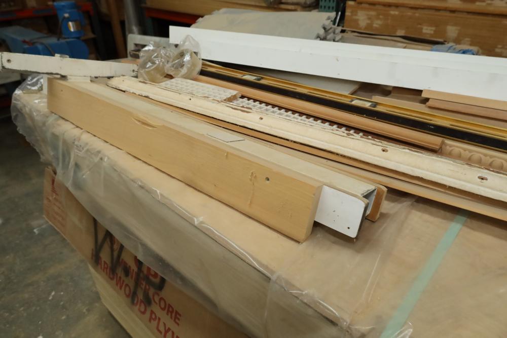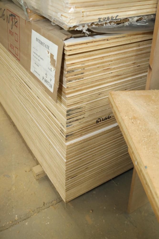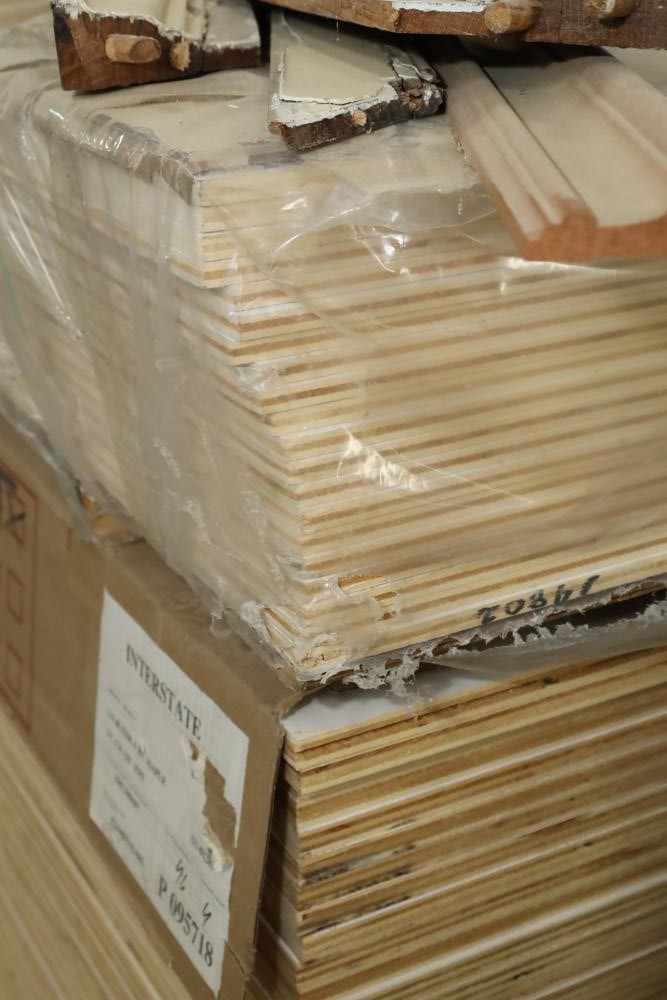 Stack of primed plywood, bottoms section is approx. 48 pieces of 4'x8'x3/4, top section is approx. 20 4'x8'x3/8. Also including assorted trim, molding, 78 magnetic level, etc. Buyer must take all. Buyer is responsible for the proper and safe removal to the first disconnect including bringing all the proper tools, equipment, supplies, and help. There will NOT be any help or equipment onsite to assist in removal.