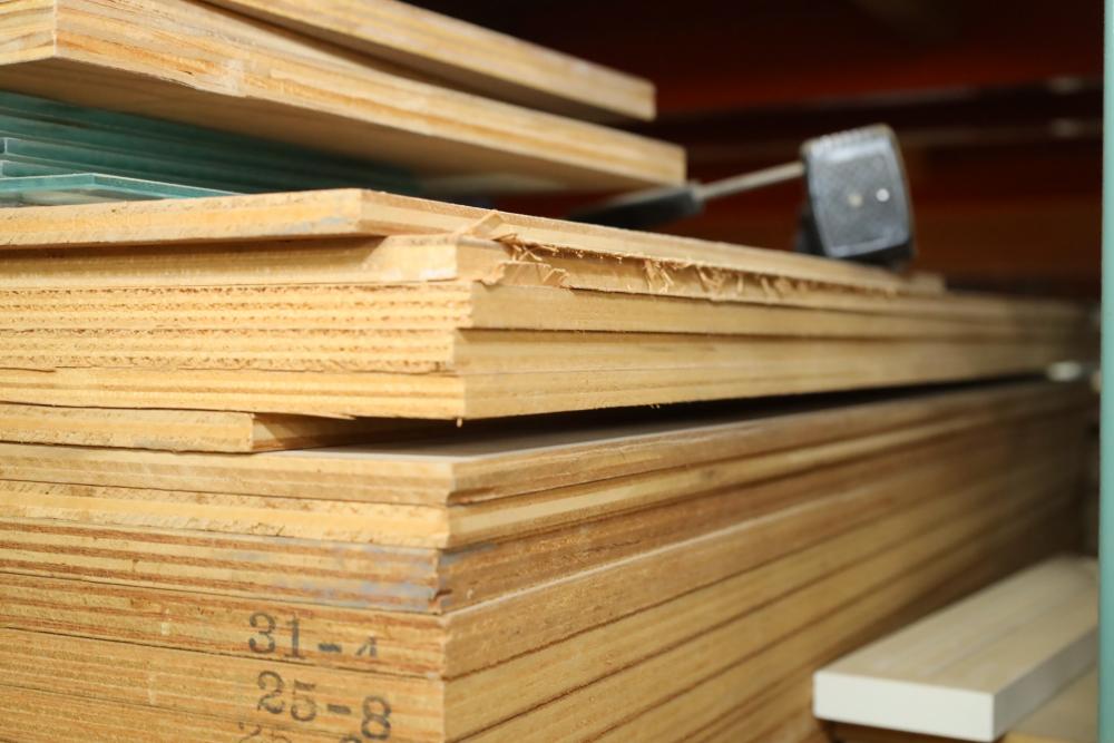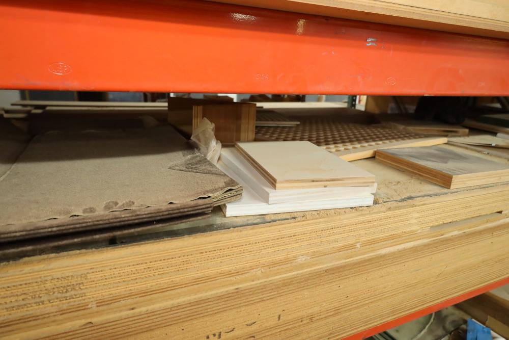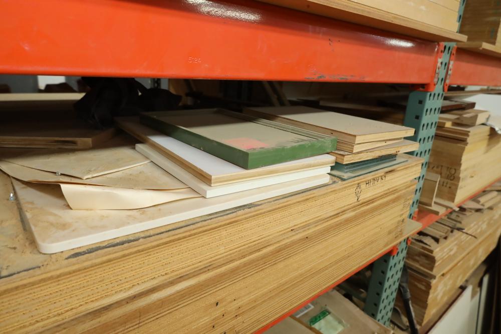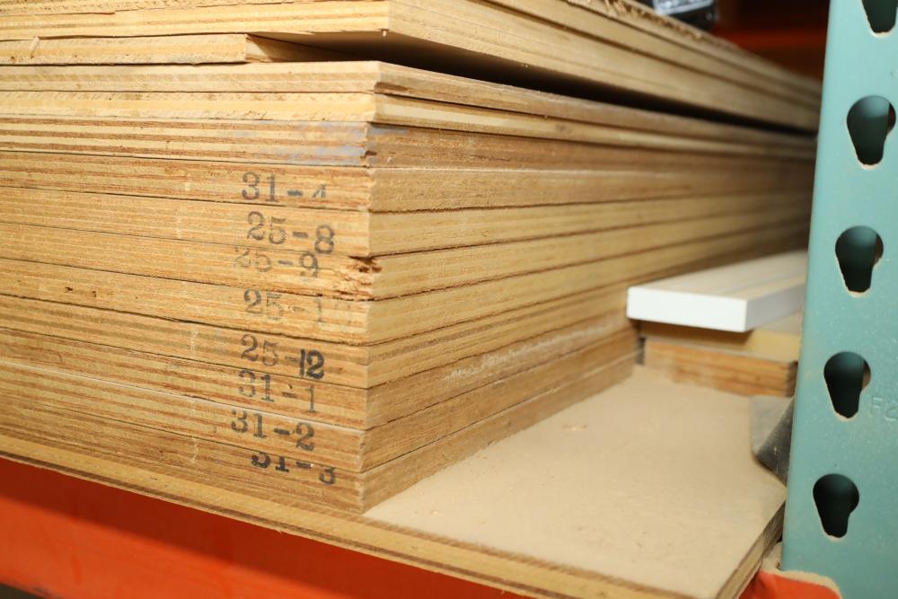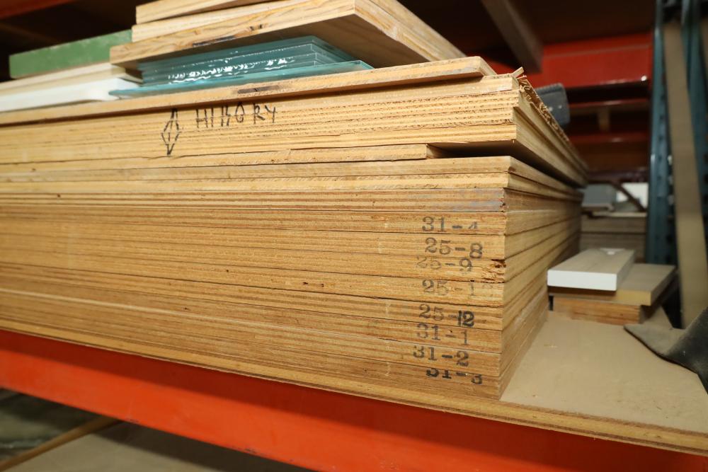 Contents of pallet shelf including 4'x8' wood, some marked desk grade, ranging from 3/4 to 1/2, also including assorted wood stock and glass. Buyer must take all. Buyer is responsible for the proper and safe removal to the first disconnect including bringing all the proper tools, equipment, supplies, and help. There will NOT be any help or equipment onsite to assist in removal.