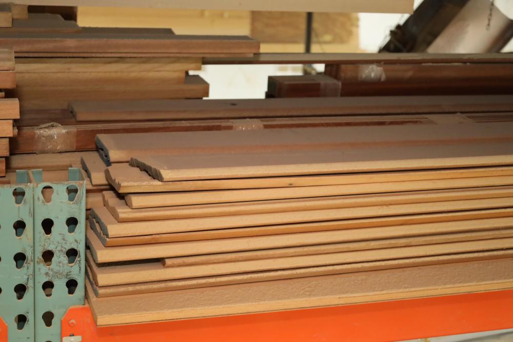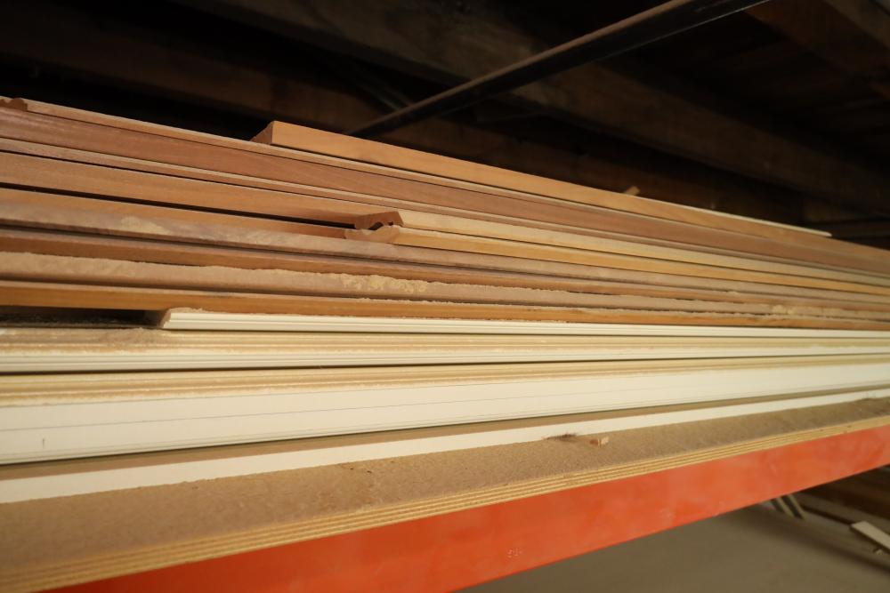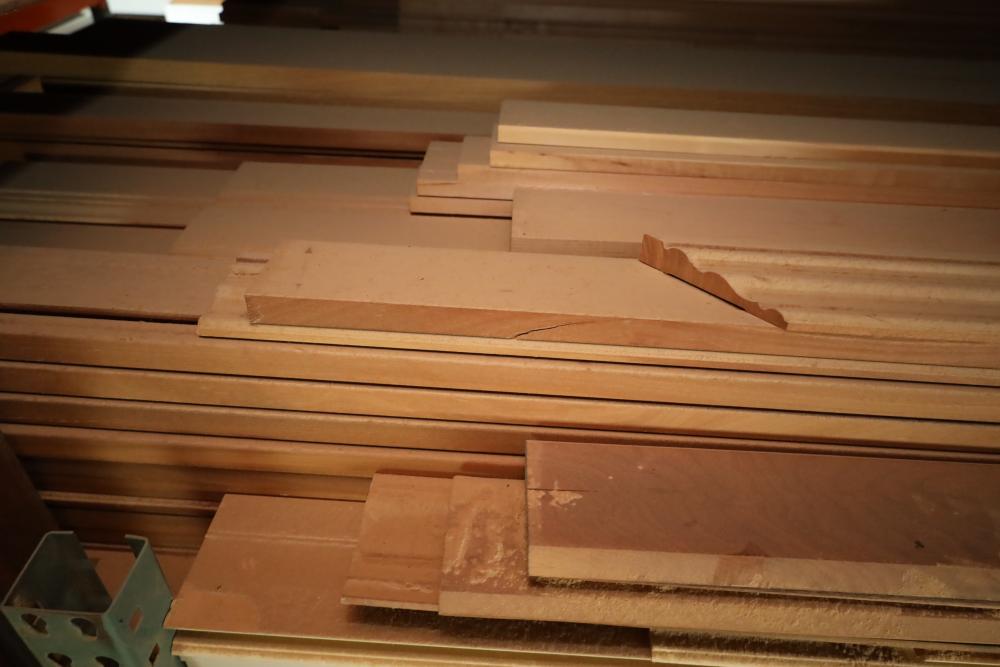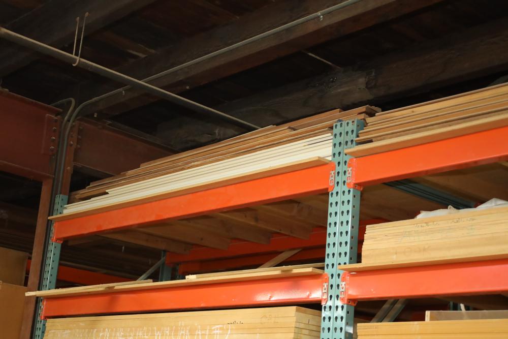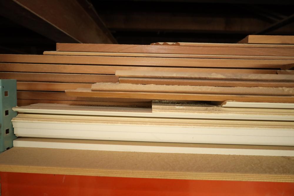 Top three shelves of pallet racking including molding, wood stock, longest piece approx. 14' varying in thickness and width. Also including 4'x8' MDF also varying in thickness Buyer must take all. Buyer is responsible for the proper and safe removal to the first disconnect including bringing all the proper tools, equipment, supplies, and help. There will NOT be any help or equipment onsite to assist in removal.