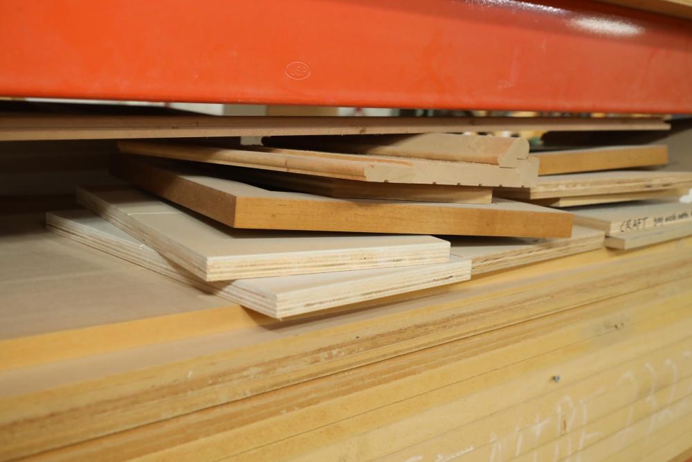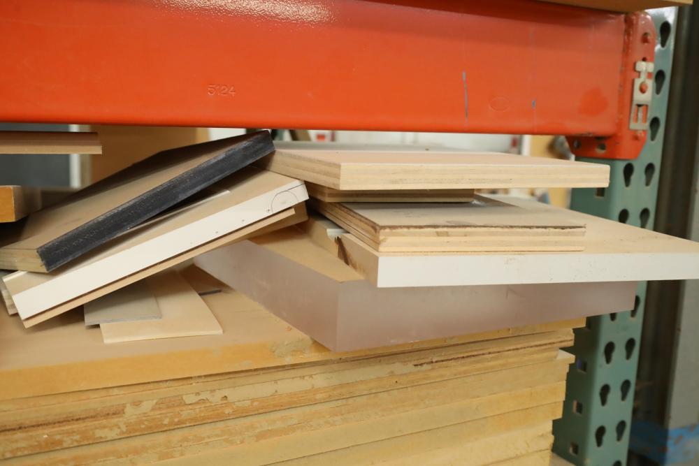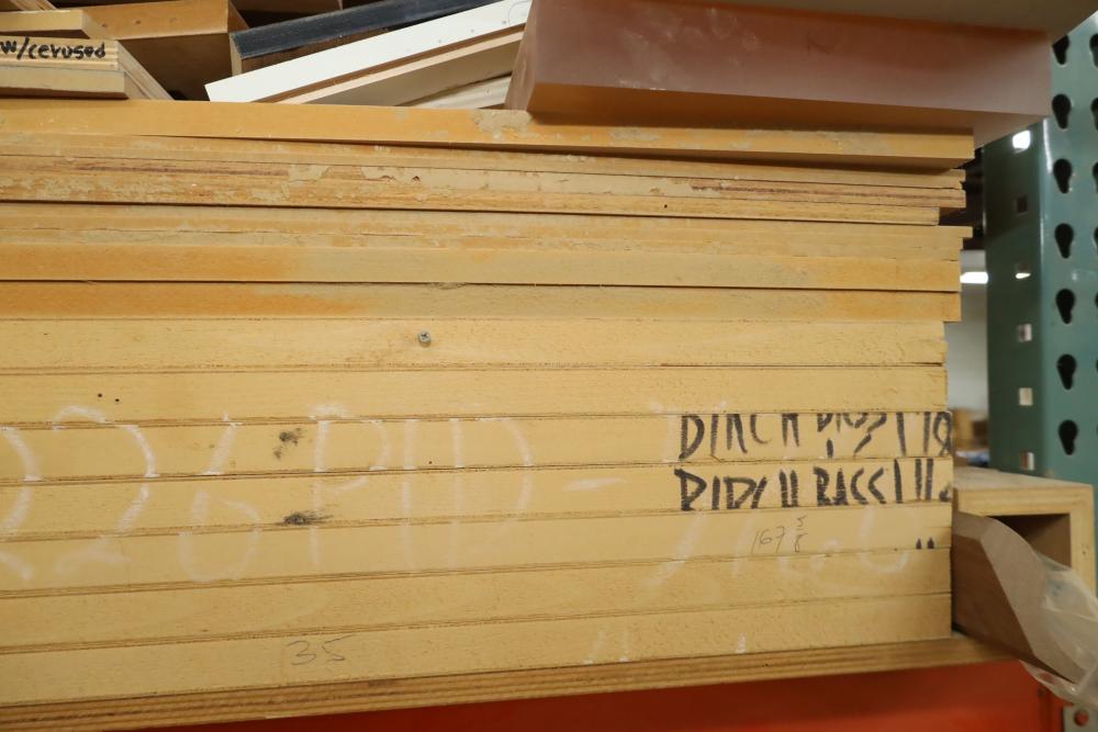 Contents of pallet shelf including, lumber core, MDF and plywood in 4'x8' sheets ranging from 1/4 to 1 1/8 width. Also including assorted wood stock. Buyer must take all. Buyer is responsible for the proper and safe removal to the first disconnect including bringing all the proper tools, equipment, supplies, and help. There will NOT be any help or equipment onsite to assist in removal.