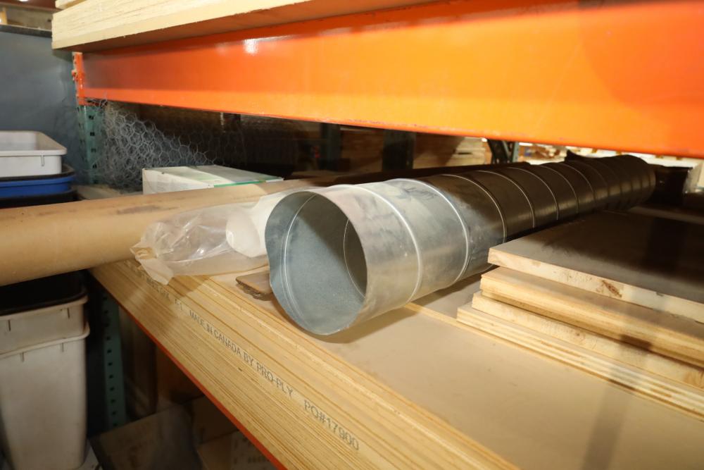 Contents of pallet shelf including plywood and MDF 4'x10' varying from 1/4 to 1 in thickness 15 pieces total, also including assorted stock, chicken wire and metal duct. Buyer must take all. Buyer is responsible for the proper and safe removal to the first disconnect including bringing all the proper tools, equipment, supplies, and help. There will NOT be any help or equipment onsite to assist in removal.