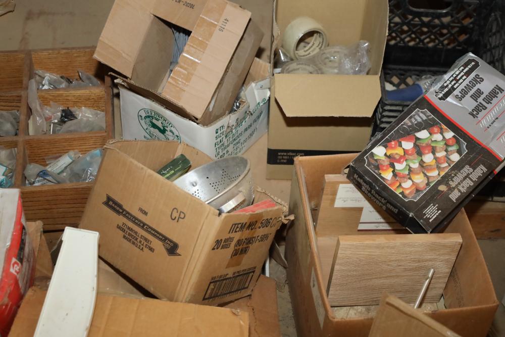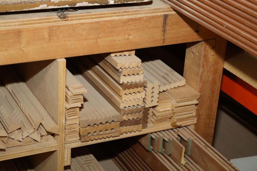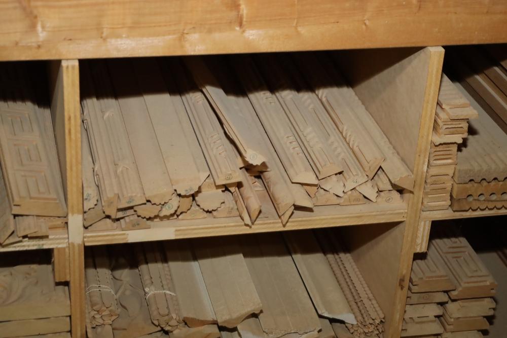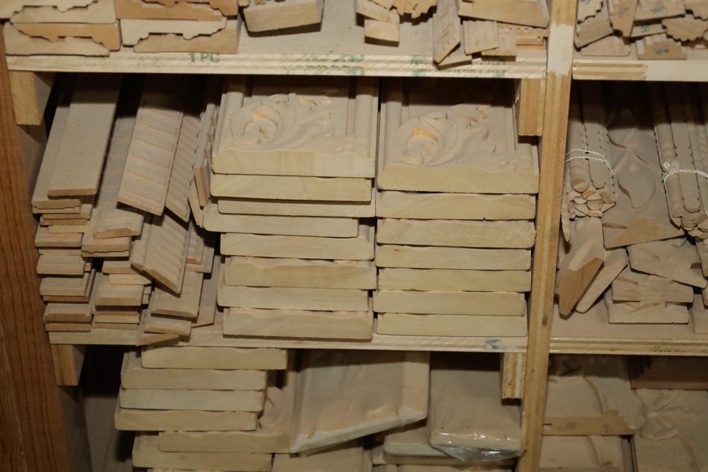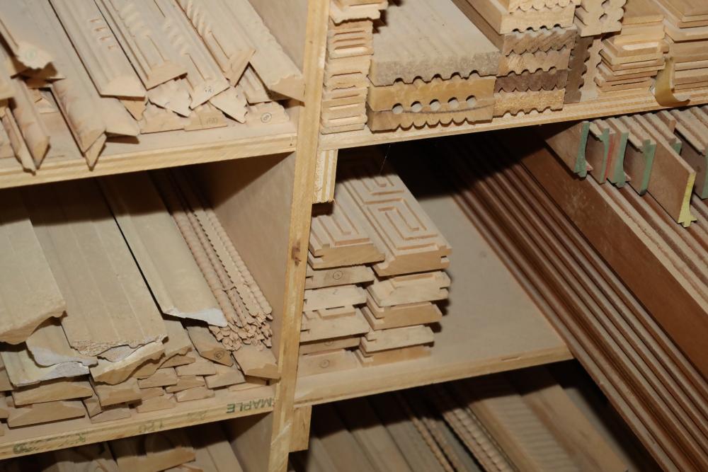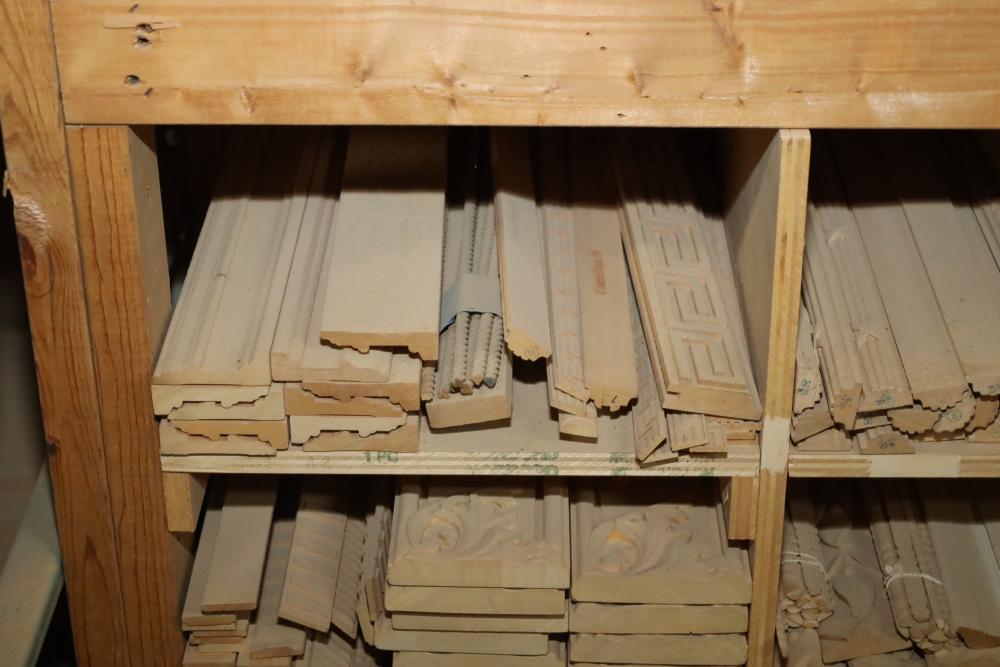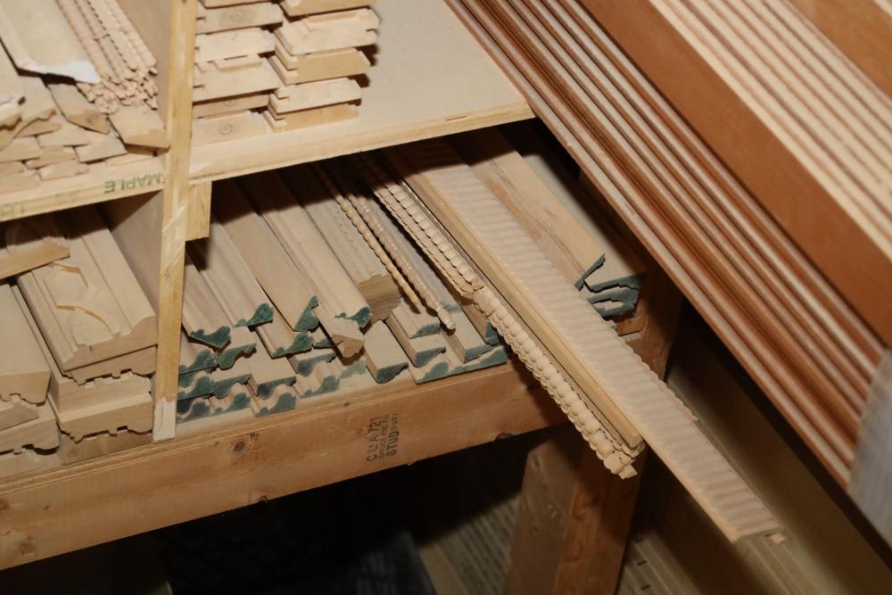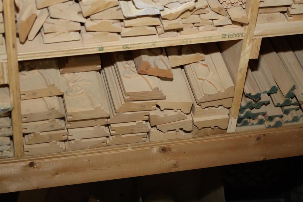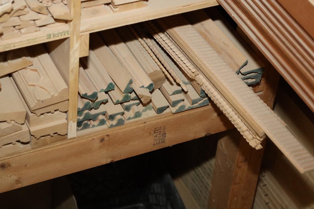 Entire contents of shelving unit including ornately carved trim pieces, molding, artwork frame, etc.. Longest piece approx. 14' also including items in front of shelf, hardware, plastic cups, hinges, etc. Buyer may take as much or as little as they choose. Buyer is responsible for the proper and safe removal to the first disconnect including bringing all the proper tools, equipment, supplies, and help. There will NOT be any help or equipment onsite to assist in removal.
