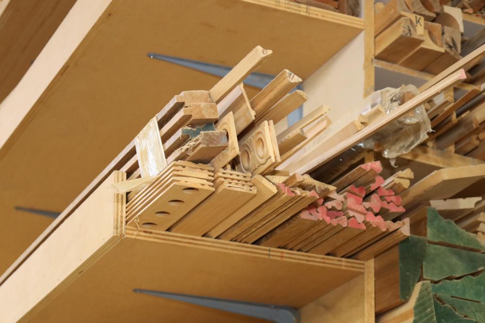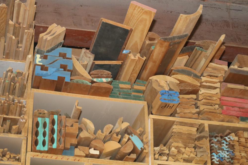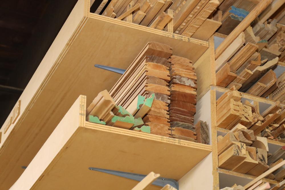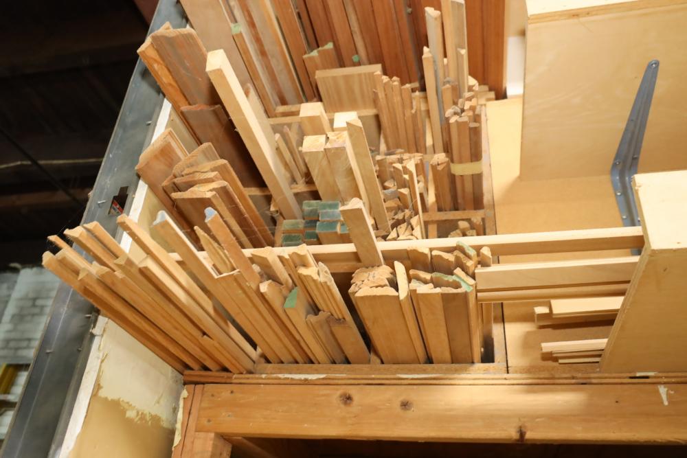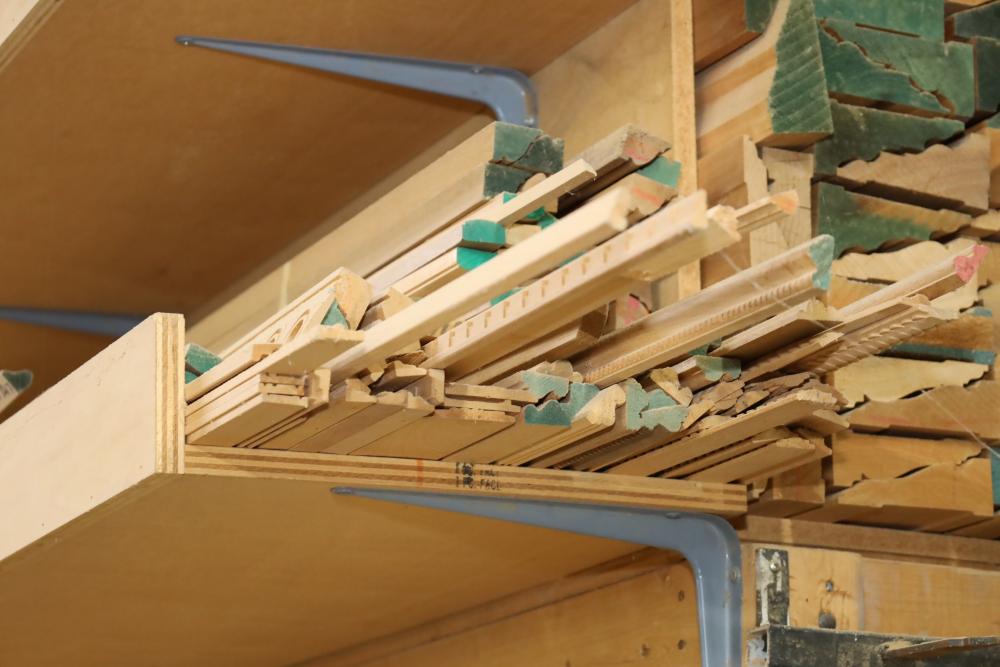 Molding on top wood rack large quantity of varying style, quantity, shape, design and thickness ranging from plain to ornate. Buyer may take as much or as little as they choose. Buyer is responsible for the proper and safe removal to the first disconnect including bringing all the proper tools, equipment, supplies, and help. There will NOT be any help or equipment onsite to assist in removal.