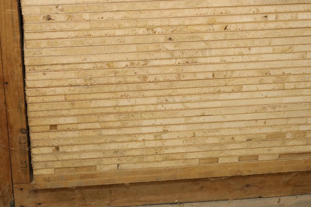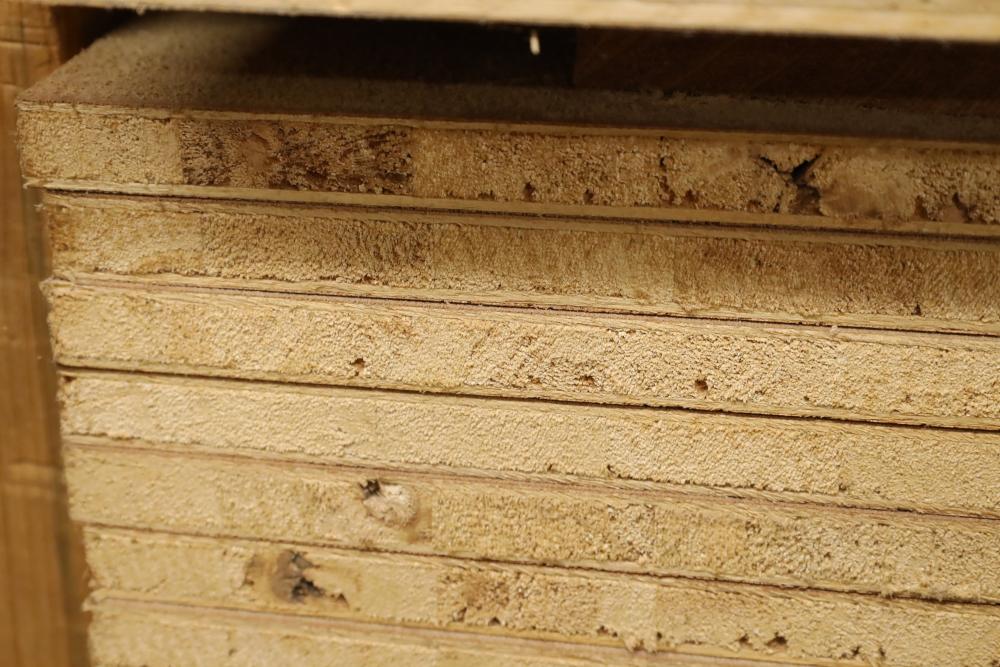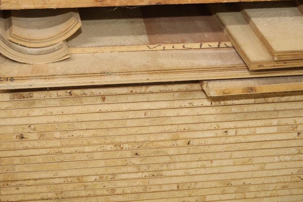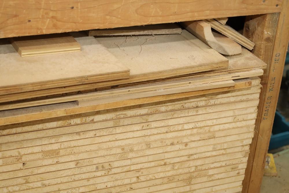 One shelf of lumber core 4'x8'x3/4, approx. 28 pieces. Also including assorted wood stock. Buyer must take all. Buyer is responsible for the proper and safe removal to the first disconnect including bringing all the proper tools, equipment, supplies, and help. There will NOT be any help or equipment onsite to assist in removal.