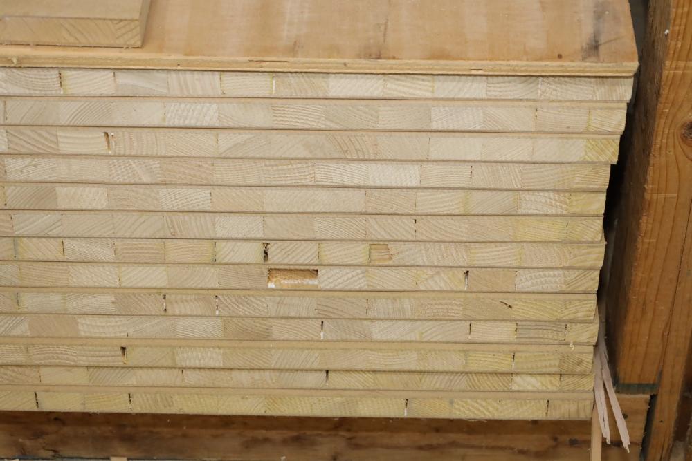 One shelf of lumber core 4'x8'x1, approx. 13 pieces. Also including one piece of plywood 1/2 thick. Buyer must take all. Buyer is responsible for the proper and safe removal to the first disconnect including bringing all the proper tools, equipment, supplies, and help. There will NOT be any help or equipment onsite to assist in removal.
