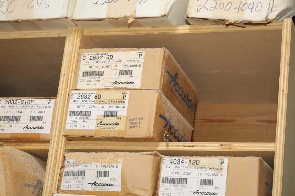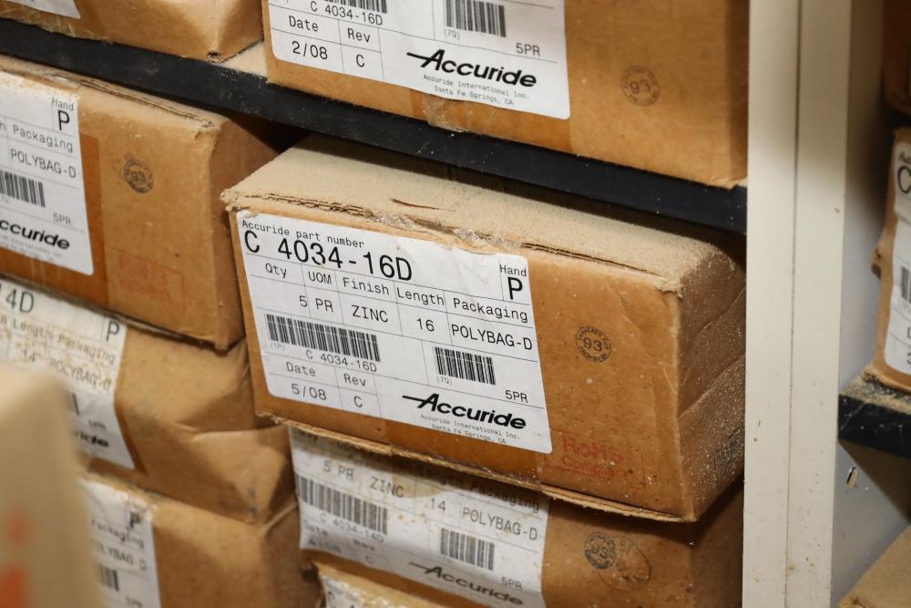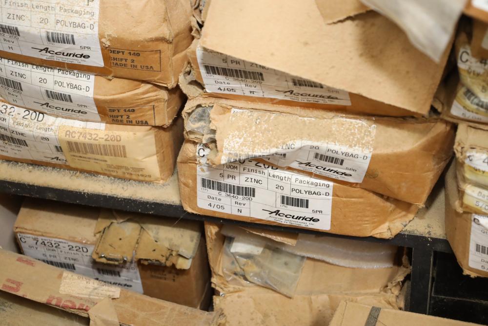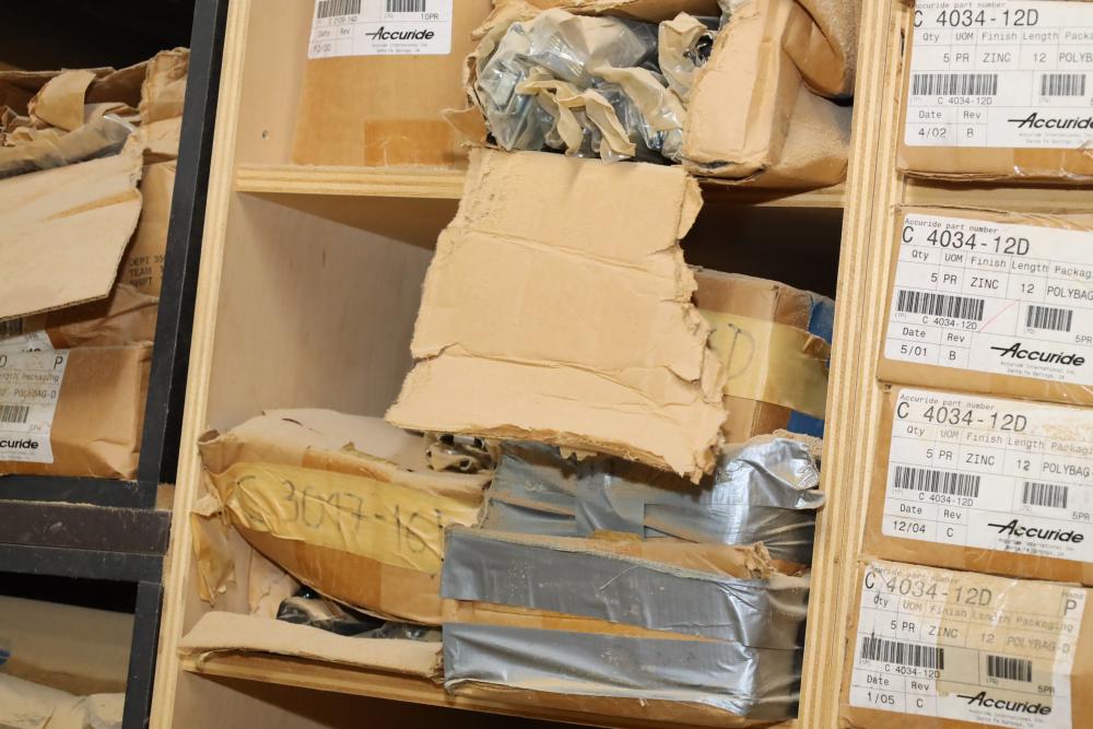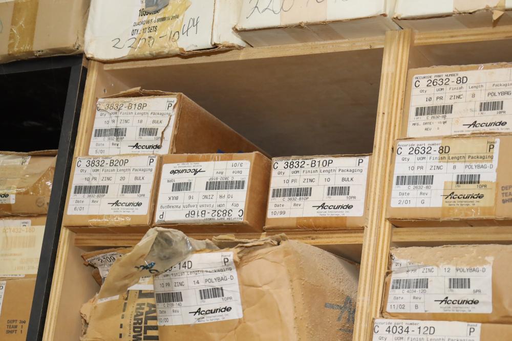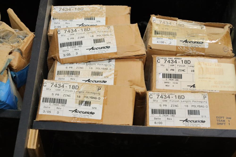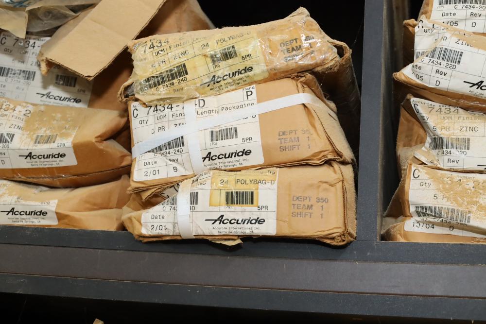 Large quantity of cabinetry hardware including accuride drawer slides part numbers include c3832-b20p, c7434-18d, 4034-18D, C3132-20ECD, etc. Buyer must take all. Buyer is responsible for the proper and safe removal to the first disconnect including bringing all the proper tools, equipment, supplies, and help. There will NOT be any help or equipment onsite to assist in removal.