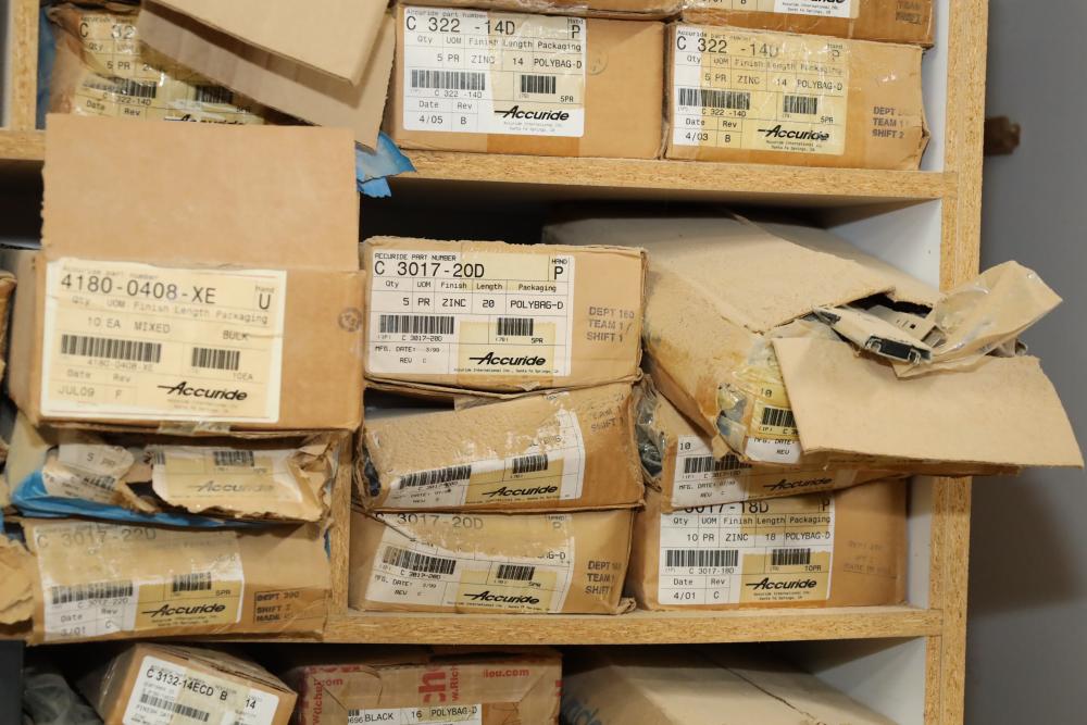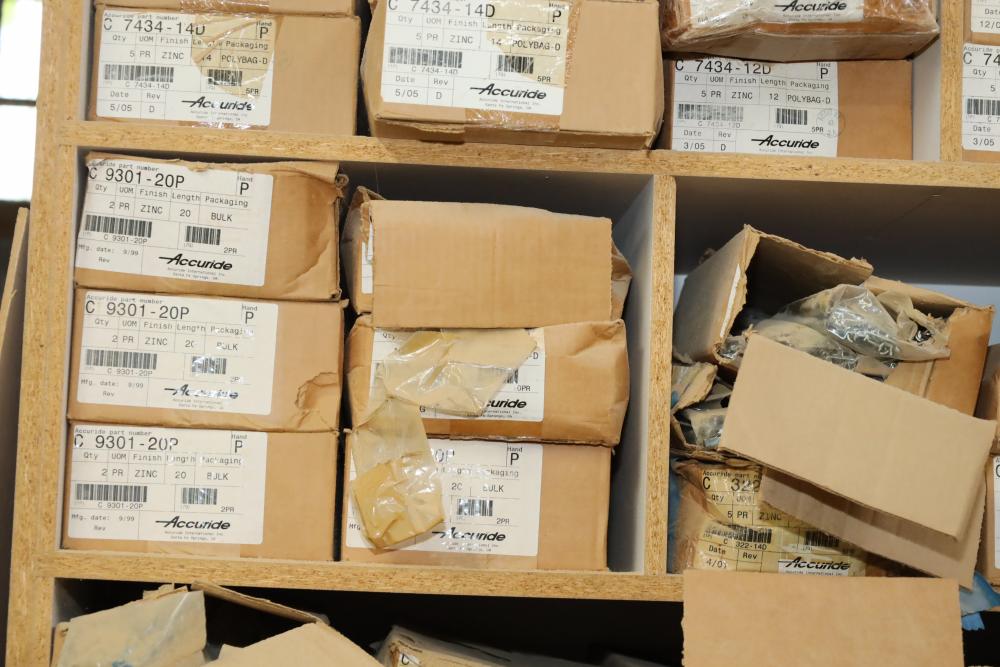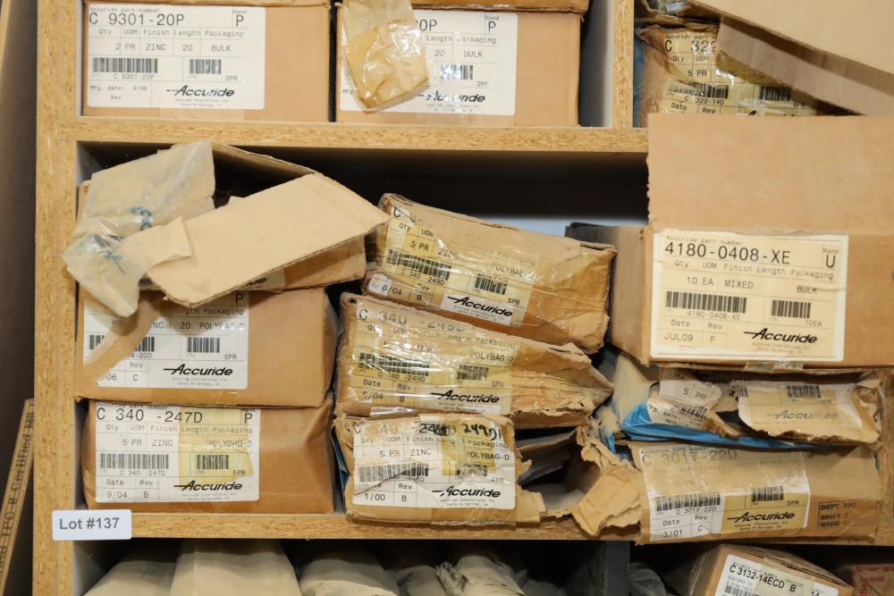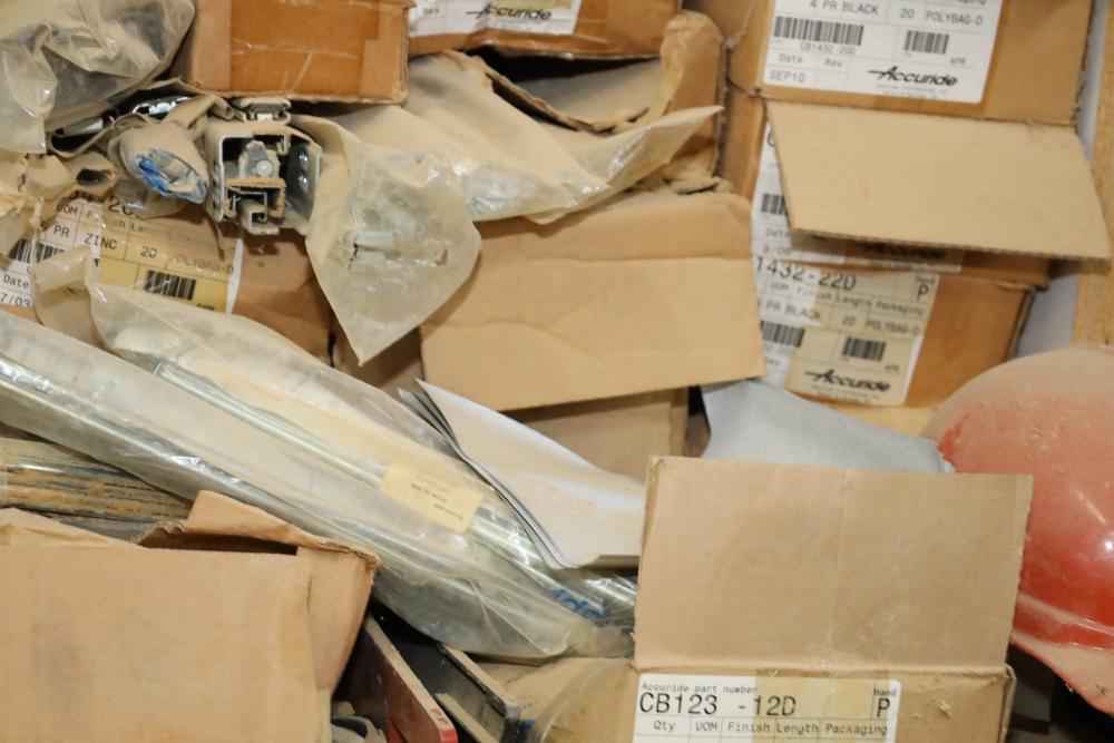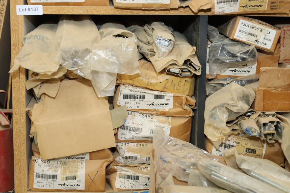 Large quantity of cabinetry hardware including accuride drawer slides part numbers include c340-247D, 418-0408-xe, c307-20D, c9301-20p, etc. Buyer must take all. Buyer is responsible for the proper and safe removal to the first disconnect including bringing all the proper tools, equipment, supplies, and help. There will NOT be any help or equipment onsite to assist in removal.