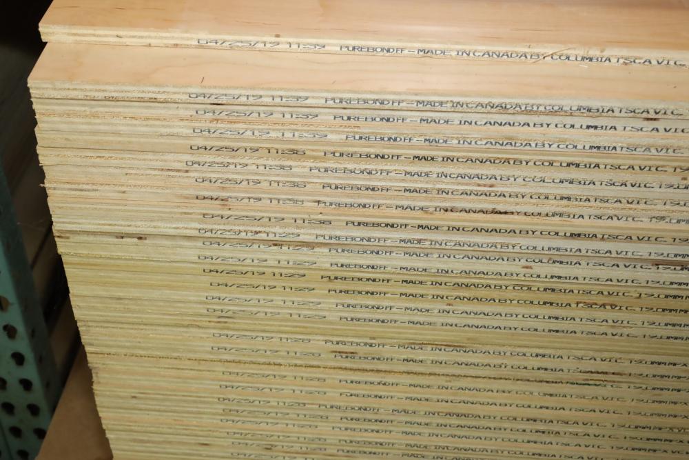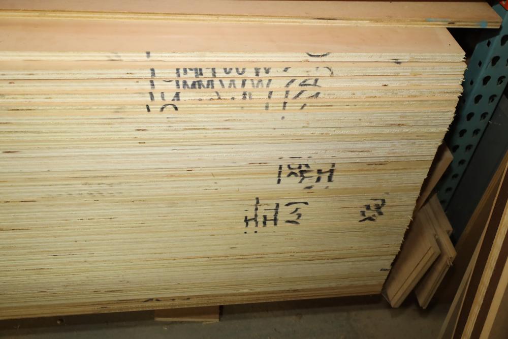 Contents of bottom row of pallet shelf including woodworkers maple plywood measuring 4'x8'x3/4, approx. 38 pieces total. Buyer must take all. Buyer is responsible for the proper and safe removal to the first disconnect including bringing all the proper tools, equipment, supplies, and help. There will NOT be any help or equipment onsite to assist in removal.