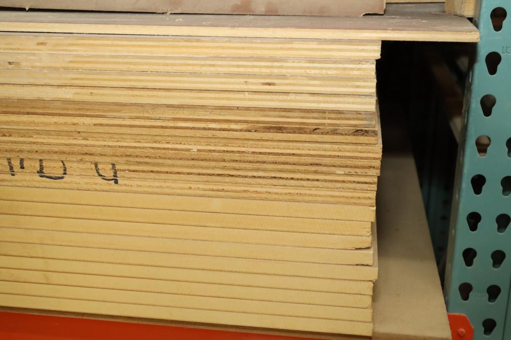 Contents of pallet shelf including plywood and MDF, most sheets are 4' x 8' x 3/4 thick, 9 pieces of MDF, 12 pieces of plywood. Buyer must take all. Buyer is responsible for the proper and safe removal to the first disconnect including bringing all the proper tools, equipment, supplies, and help. There will NOT be any help or equipment onsite to assist in removal.