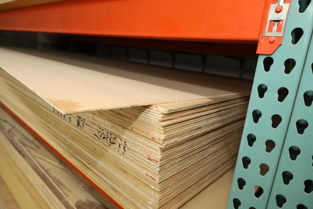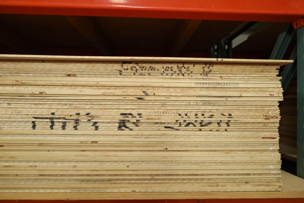 Contents of pallet shelf including sheet stock measuring 4'x8'x1/4. Over 40 pieces in total. Buyer must take all. Buyer is responsible for the proper and safe removal to the first disconnect including bringing all the proper tools, equipment, supplies, and help. There will NOT be any help or equipment onsite to assist in removal.