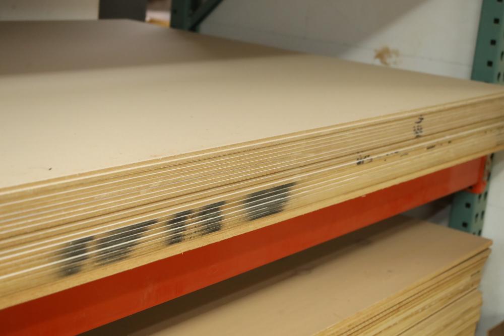 Contents of two pallet shelves including MDF some with white finish, most pieces are 4'x8'x1/4. Approx 23 pieces total. Buyer must take all. Buyer is responsible for the proper and safe removal to the first disconnect including bringing all the proper tools, equipment, supplies, and help. There will NOT be any help or equipment onsite to assist in removal.