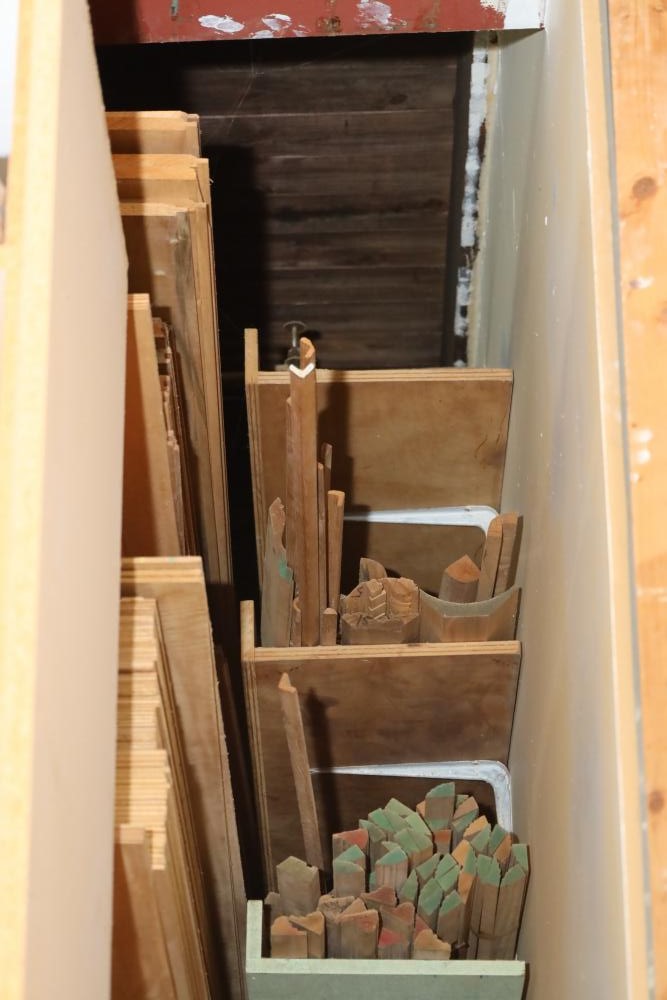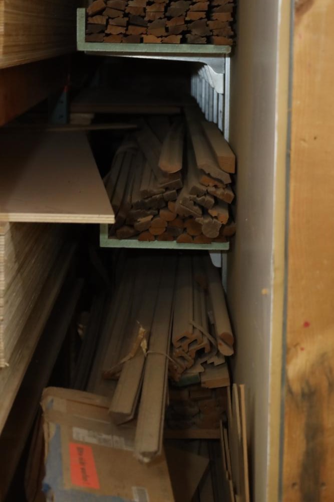 Three shelves of decorative molding, trim and wood stock. Longest piece approx. 14', largest piece 9x1 thick. Buyer may take as much or as little as they choose. Buyer is responsible for the proper and safe removal to the first disconnect including bringing all the proper tools, equipment, supplies, and help. There will NOT be any help or equipment onsite to assist in removal.