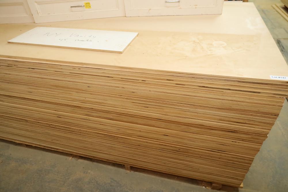 Stack of whole piece maple plywood measuring 4'x8'x3/4. Approx 46 pieces total. Buyer must take all. Buyer is responsible for the proper and safe removal to the first disconnect including bringing all the proper tools, equipment, supplies, and help. There will NOT be any help or equipment onsite to assist in removal.