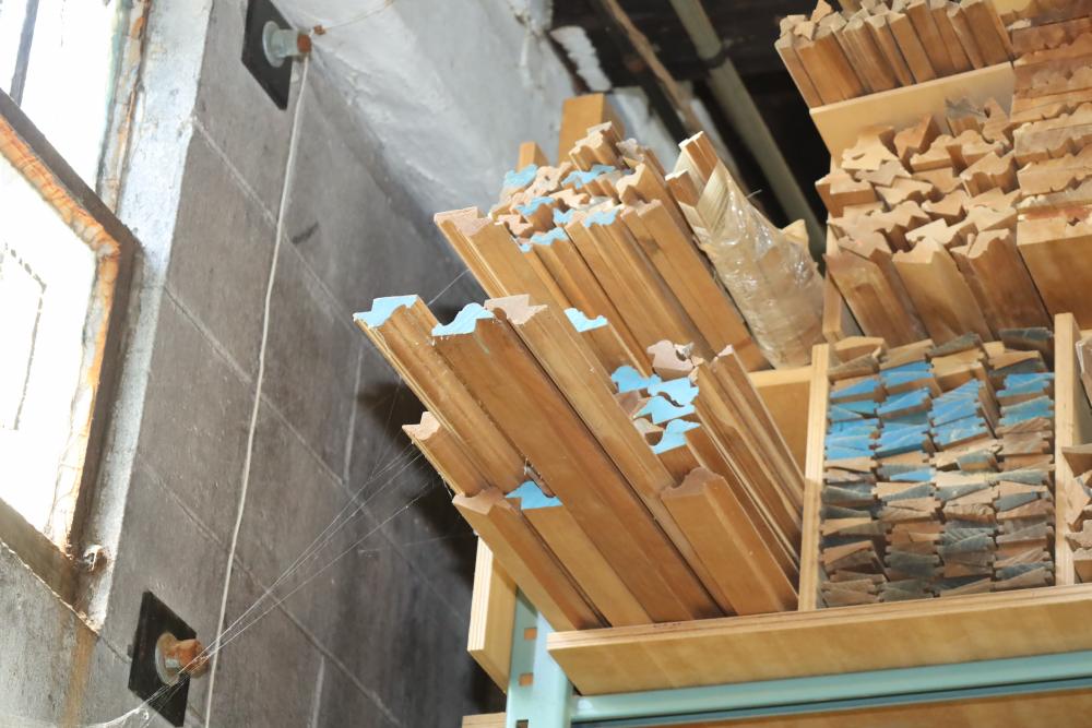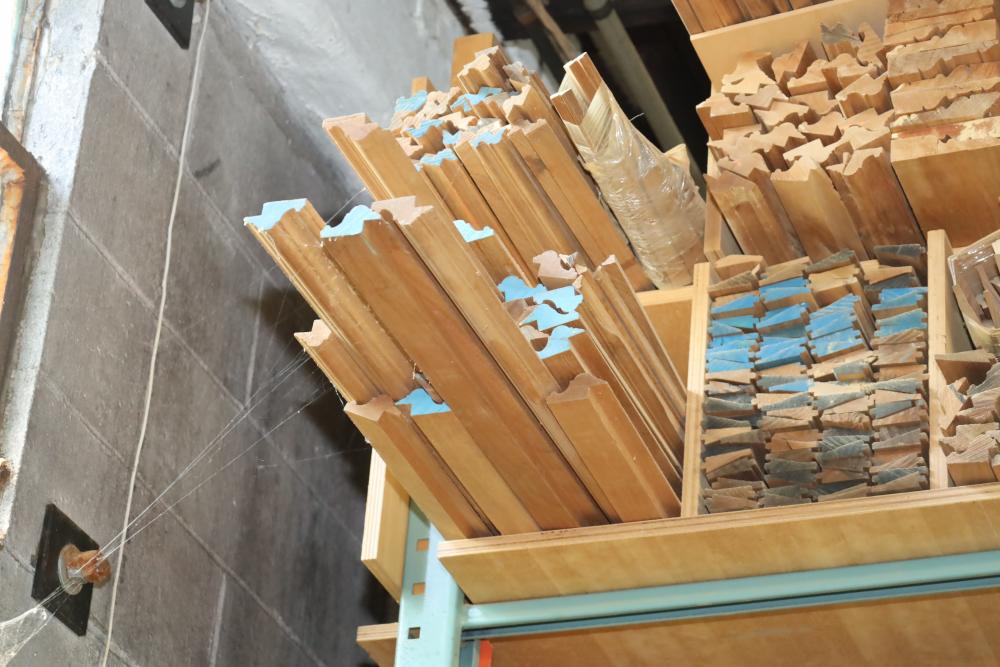One shelf of assorted molding in varying size, shape and style. Longest approx. 14' in length. Buyer must take all. Buyer is responsible for the proper and safe removal to the first disconnect including bringing all the proper tools, equipment, supplies, and help. There will NOT be any help or equipment onsite to assist in removal.