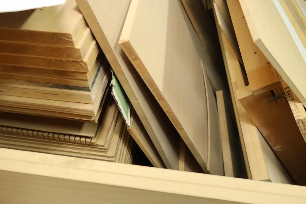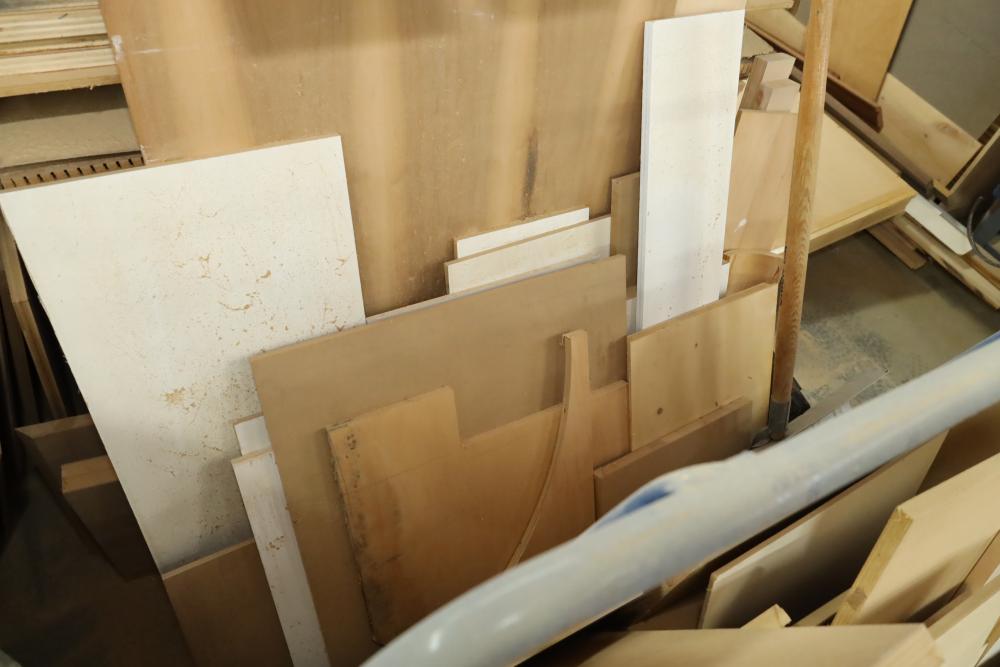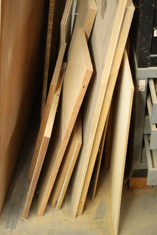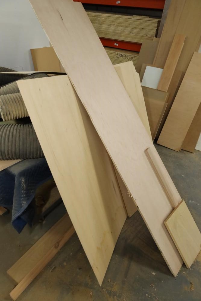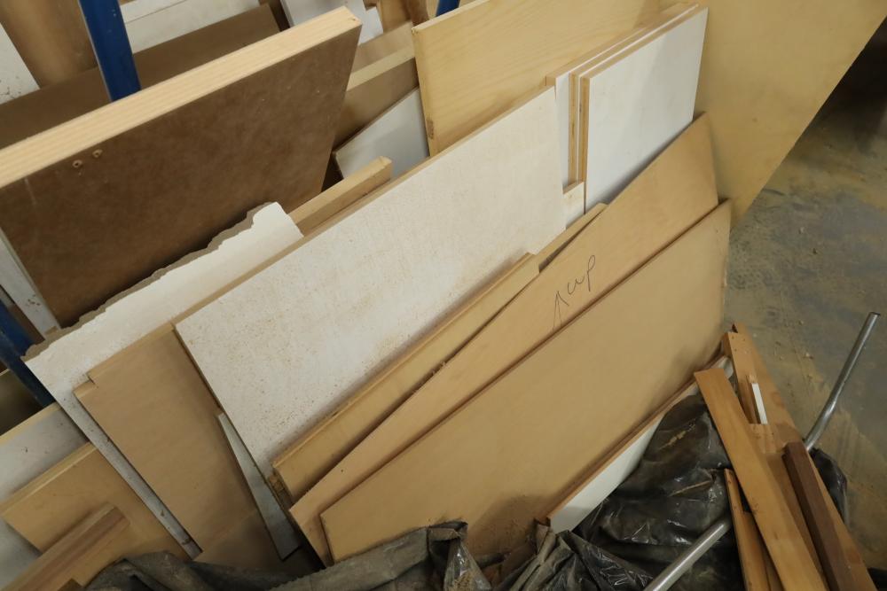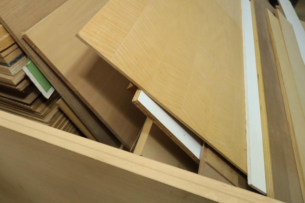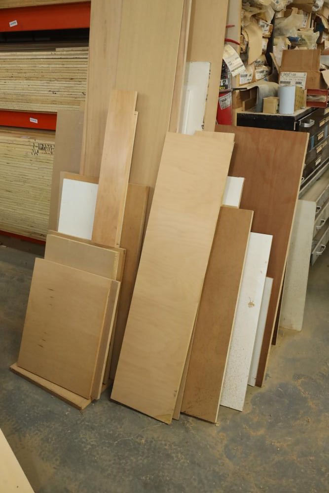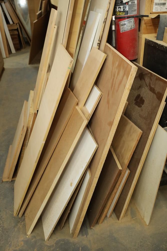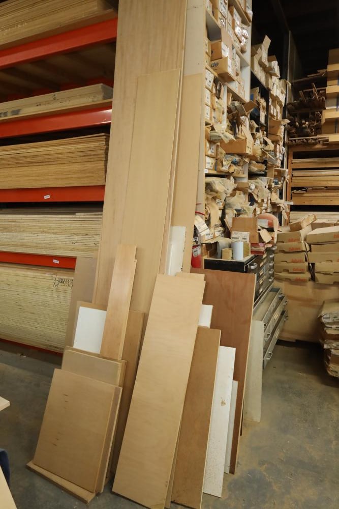 Assorted sheet stock and wood stock leaning around two stacks of previous lots. Including plywood, lumber, some primed pieces, some scrap stock, MDF, veneer, etc. All varying in length, width and thickness. Longest piece approx. 10.5'. Buyer must take all. Buyer is responsible for the proper and safe removal to the first disconnect including bringing all the proper tools, equipment, supplies, and help. There will NOT be any help or equipment onsite to assist in removal.