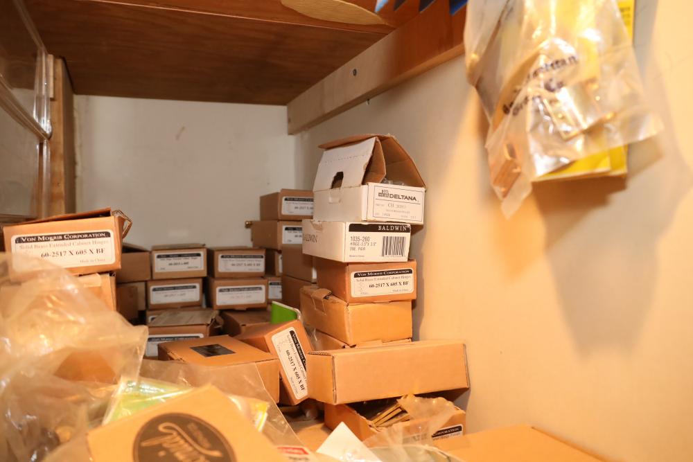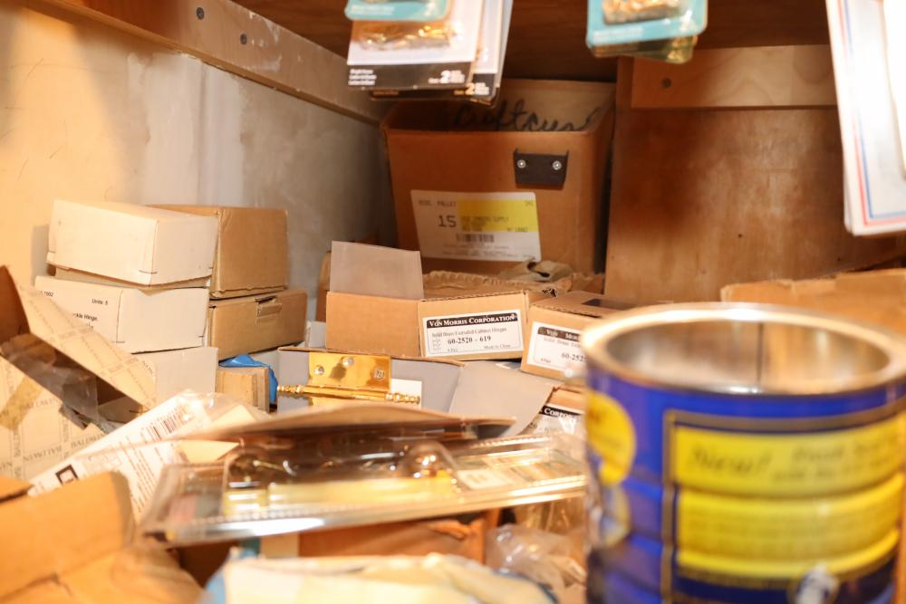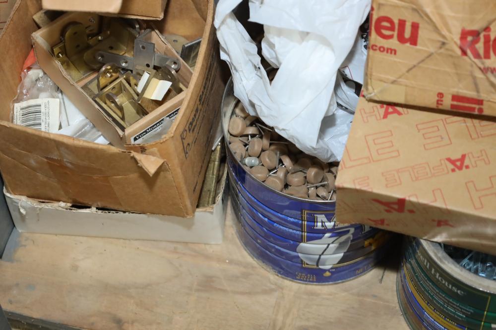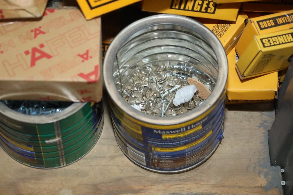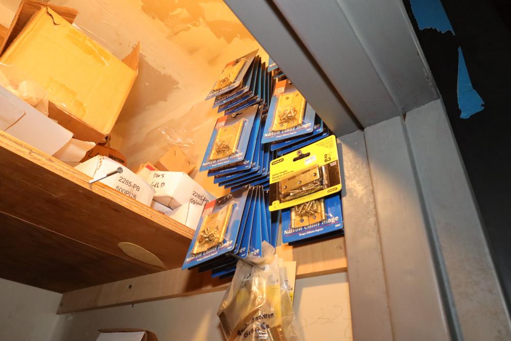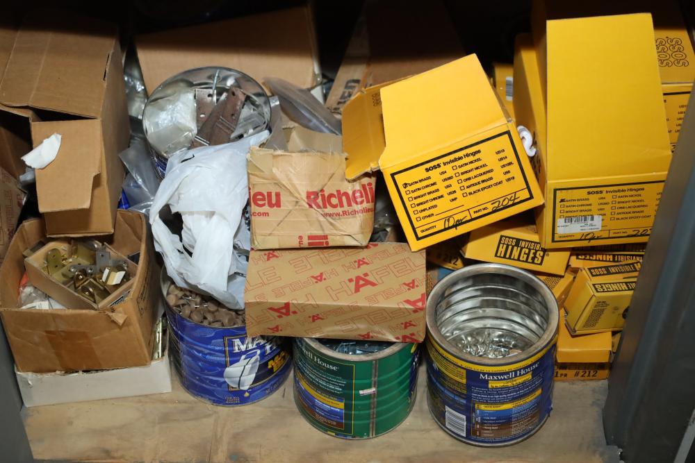 Contents of closet number three including hardware, shelf supports, tacks, hinges, flat corner irons, flanges, etc. Buyer must take all. Buyer is responsible for the proper and safe removal to the first disconnect including bringing all the proper tools, equipment, supplies, and help. There will NOT be any help or equipment onsite to assist in removal.