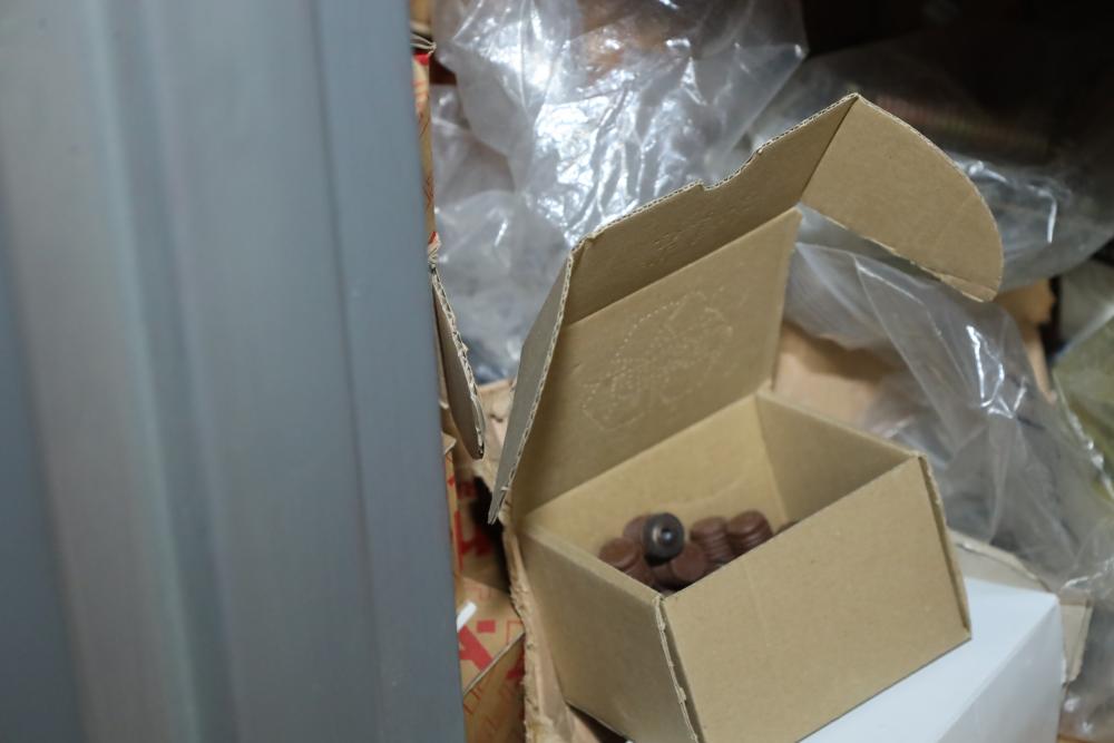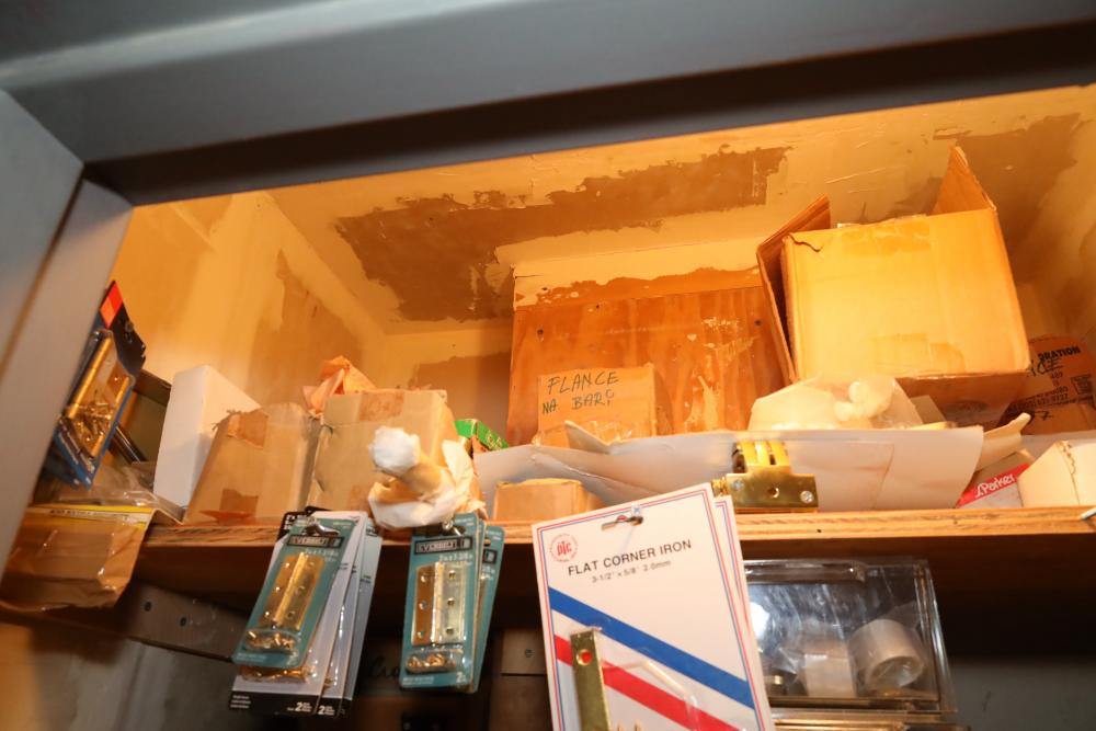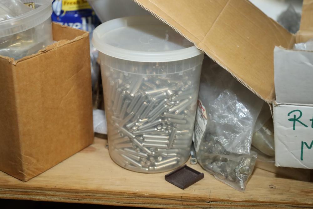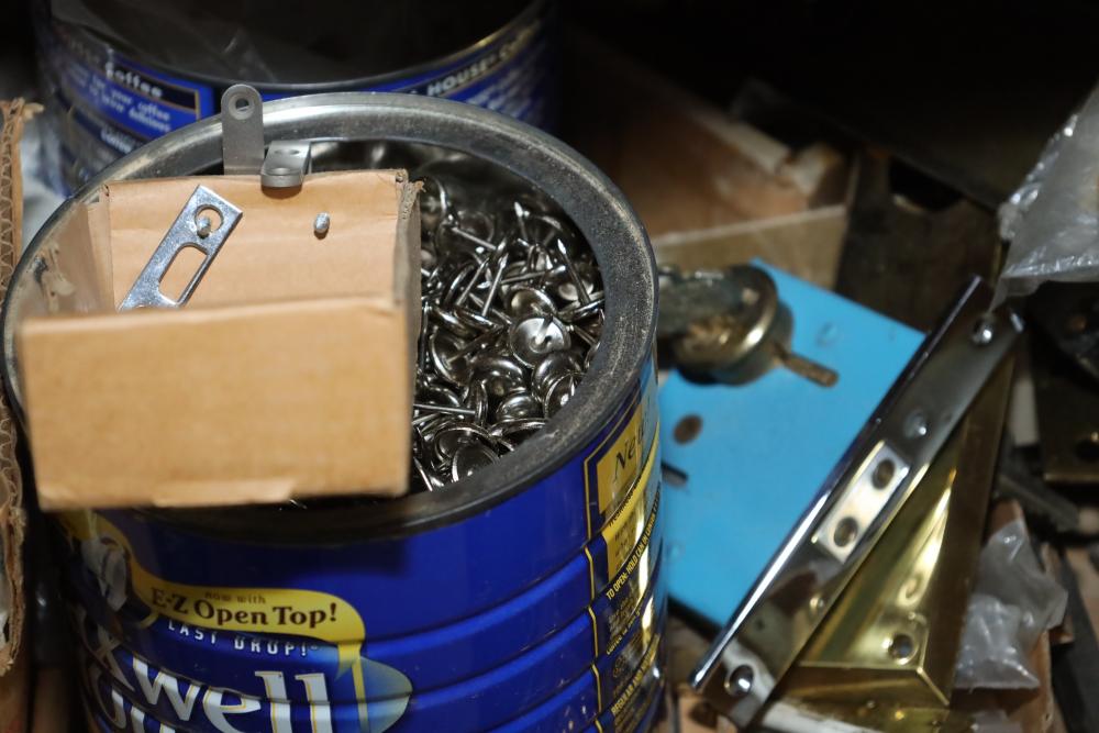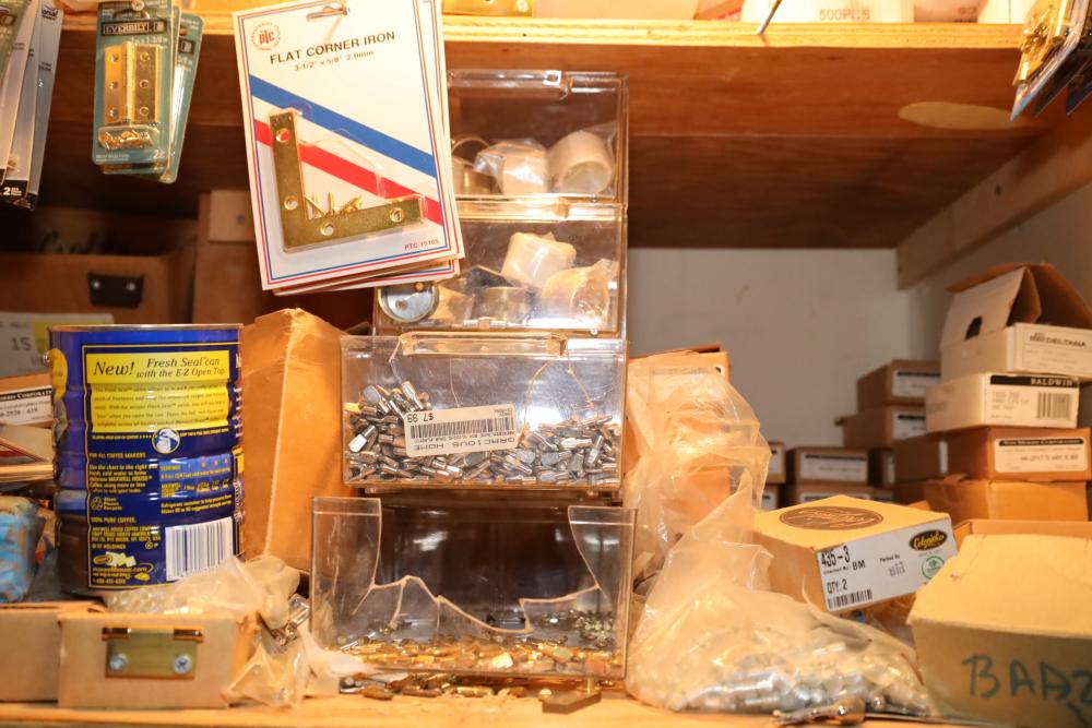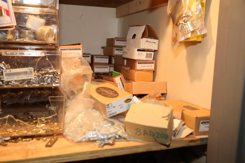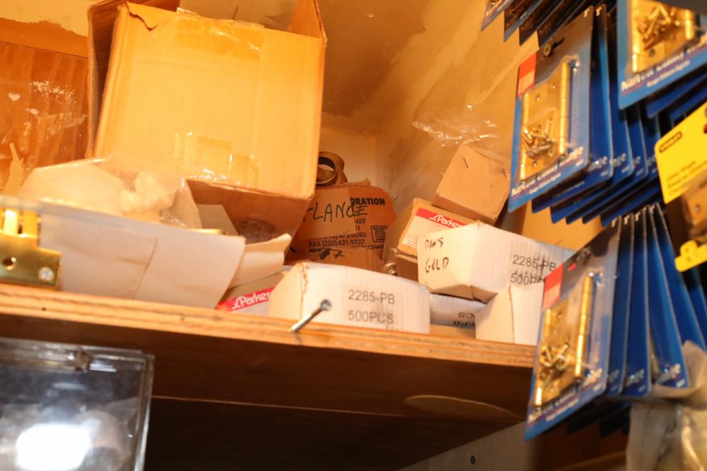 Contents of closet number three including hardware, shelf supports, tacks, hinges, flat corner irons, flanges, etc. Buyer must take all. Buyer is responsible for the proper and safe removal to the first disconnect including bringing all the proper tools, equipment, supplies, and help. There will NOT be any help or equipment onsite to assist in removal.