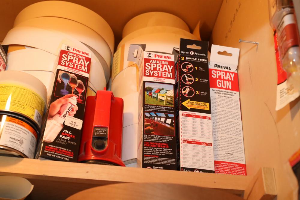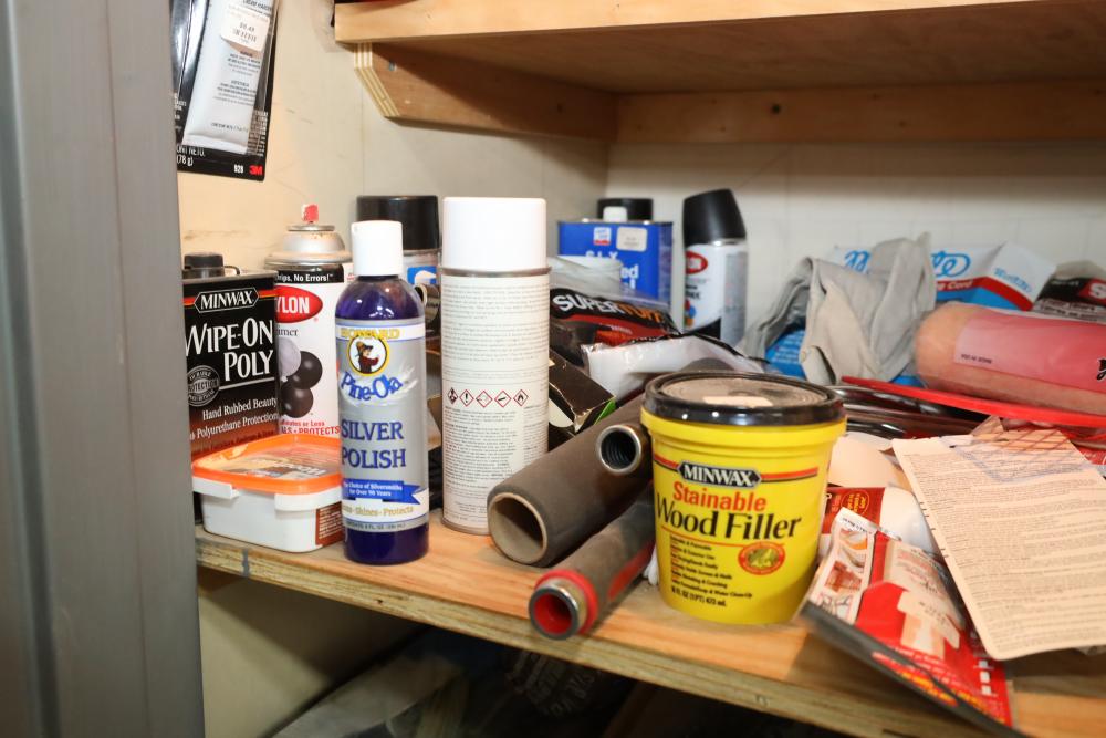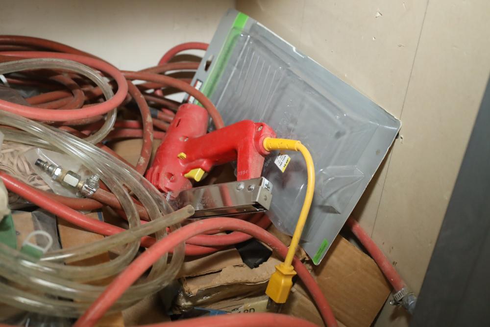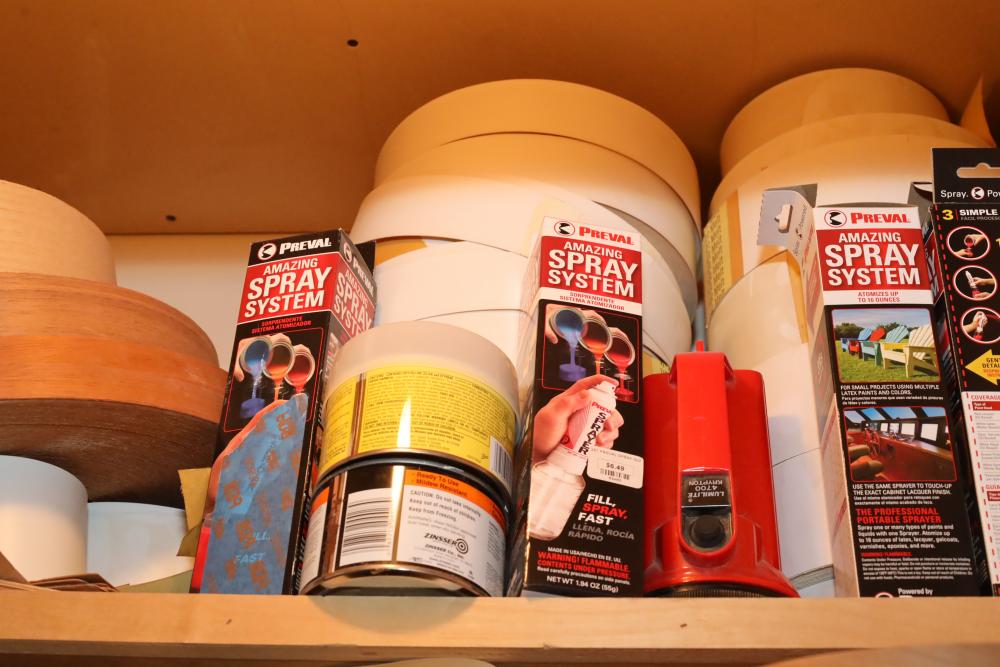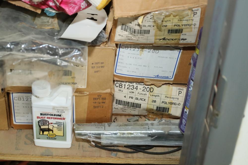 Contents of closet number 6 including rolls of veneer, cabinetry hardware, accuride drawer slides, arrow fastener electric stapler, duofast pneumatic finishing tools, respirator, etc. Buyer must take all. Buyer is responsible for the proper and safe removal to the first disconnect including bringing all the proper tools, equipment, supplies, and help. There will NOT be any help or equipment onsite to assist in removal.