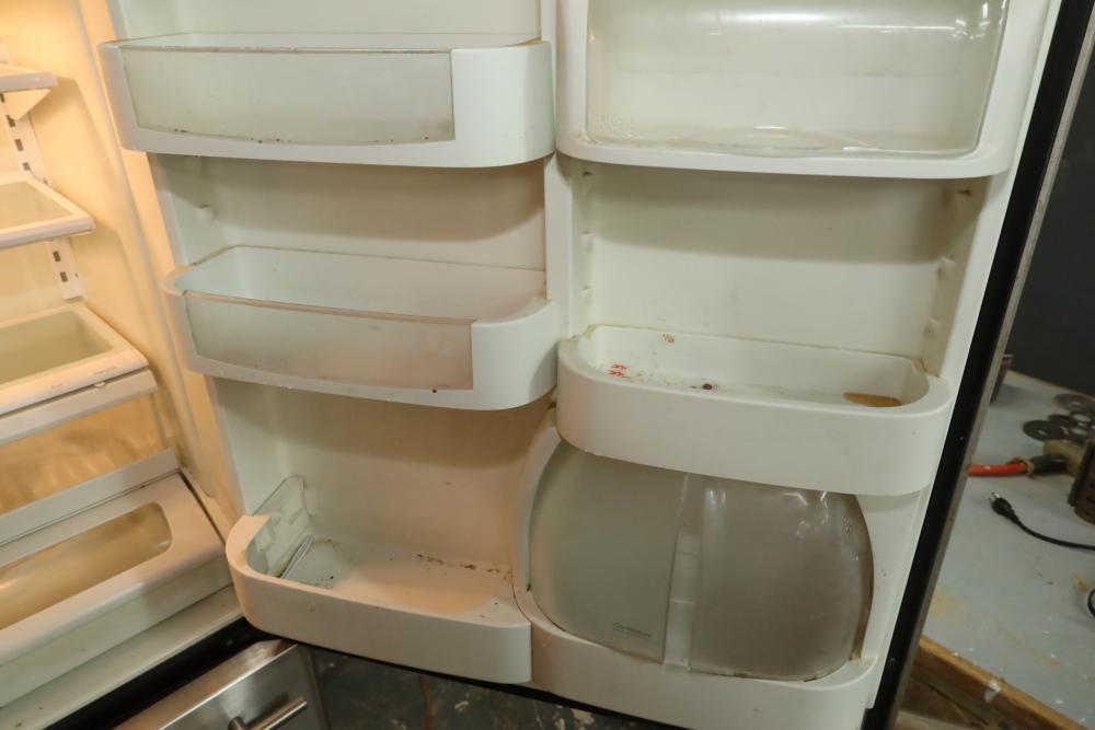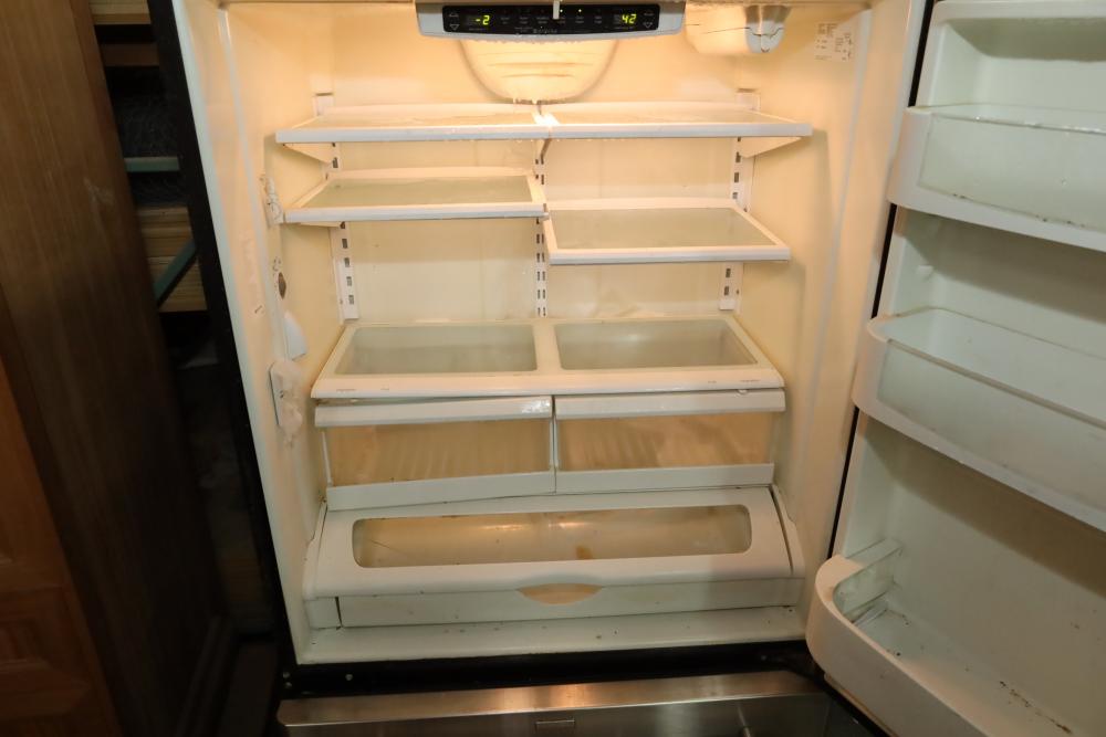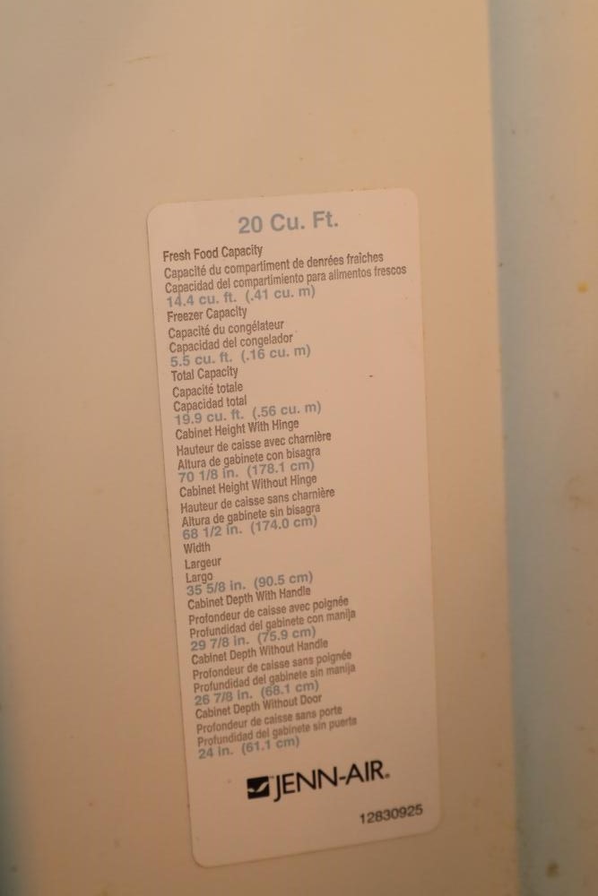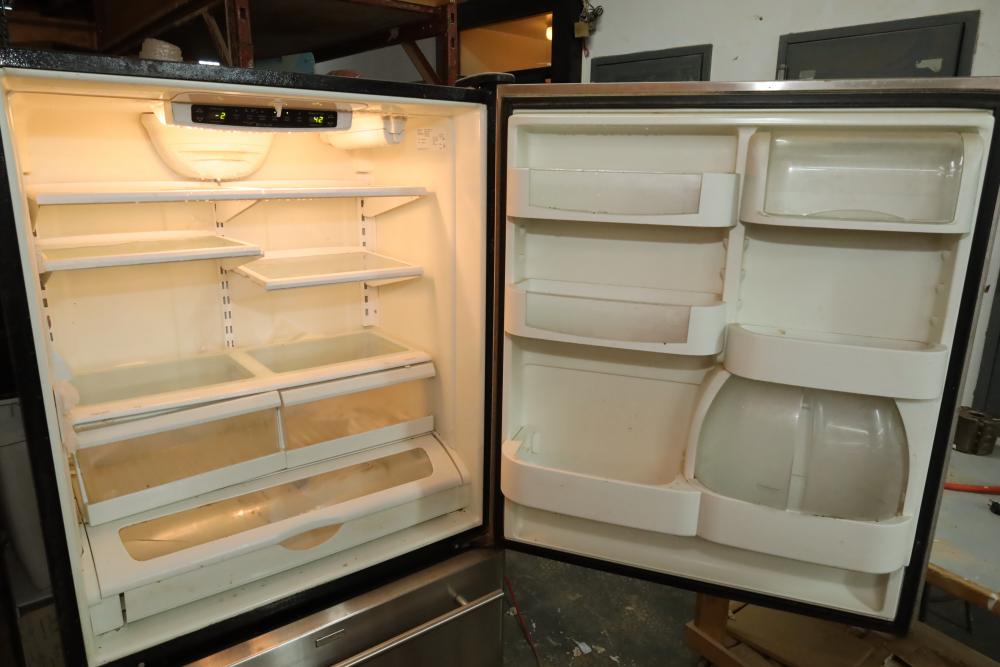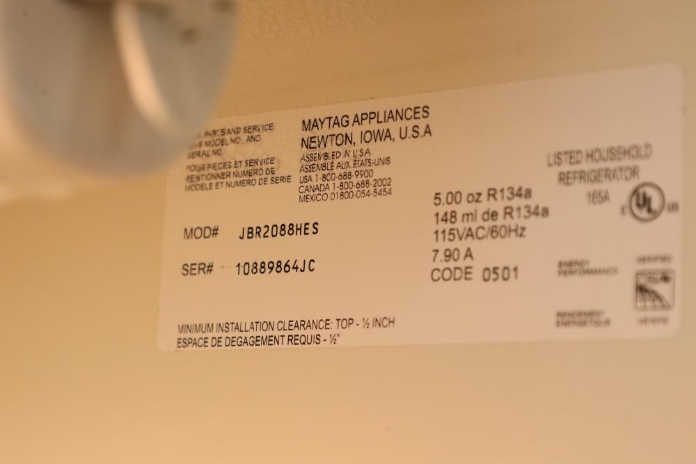 Maytag Jennair stainless steel refrigerator over freezer combination, 20 cubic ft. capacity, Model JBR2088HES, doors may need adjustment. Buyer must take all. Buyer is responsible for the proper and safe removal to the first disconnect including bringing all the proper tools, equipment, supplies, and help. There will NOT be any help or equipment onsite to assist in removal.