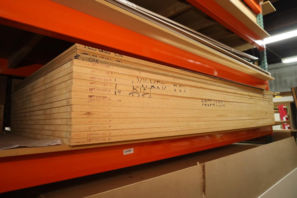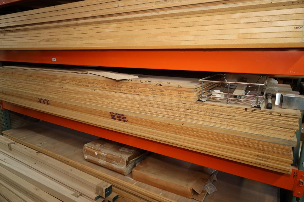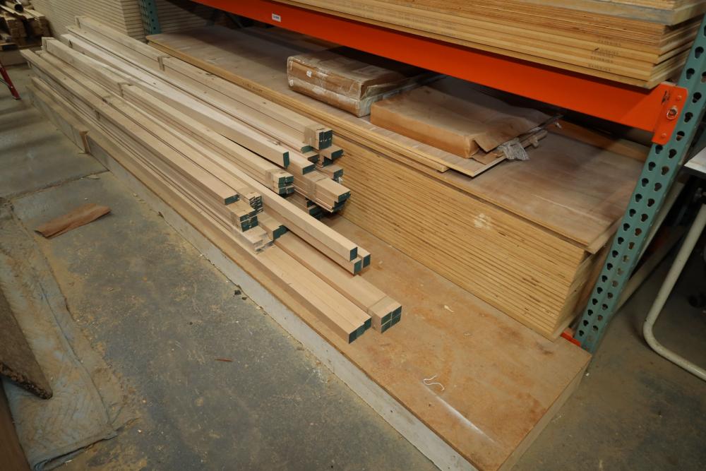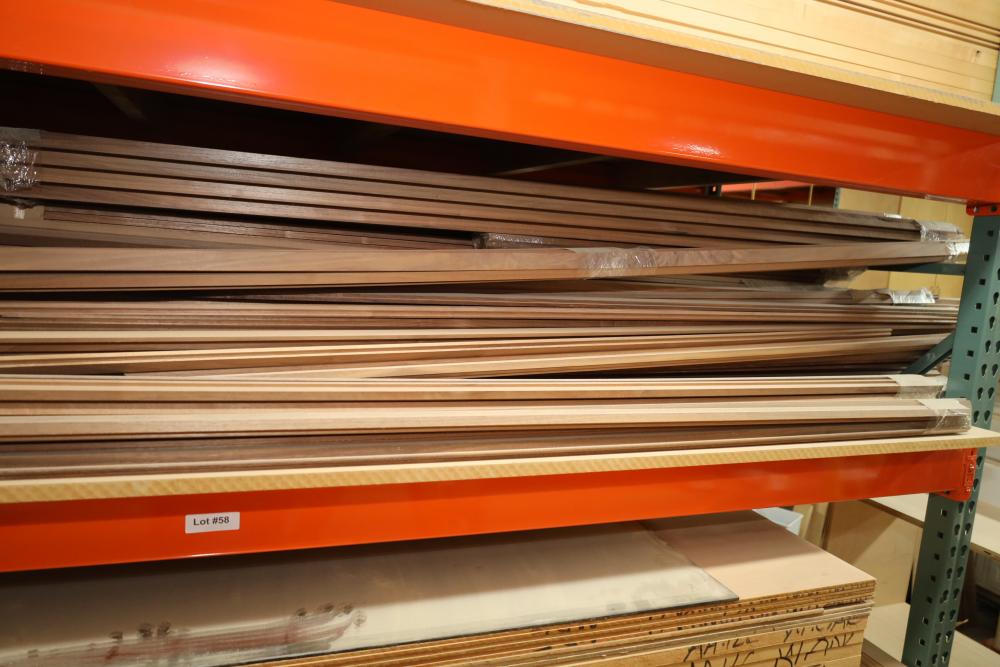 Contents of pallet shelf including various plywood, MDF, etc. Ranging from 1 to 3/8. Woods include white oak, santos rosewood also includes assorted other items. Longest pieces approx. 10', also includes some 8' sheets. Buyer must take all. Buyer is responsible for the proper and safe removal to the first disconnect including bringing all the proper tools, equipment, supplies, and help. There will NOT be any help or equipment onsite to assist in removal.