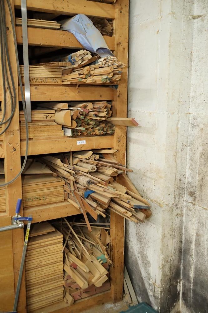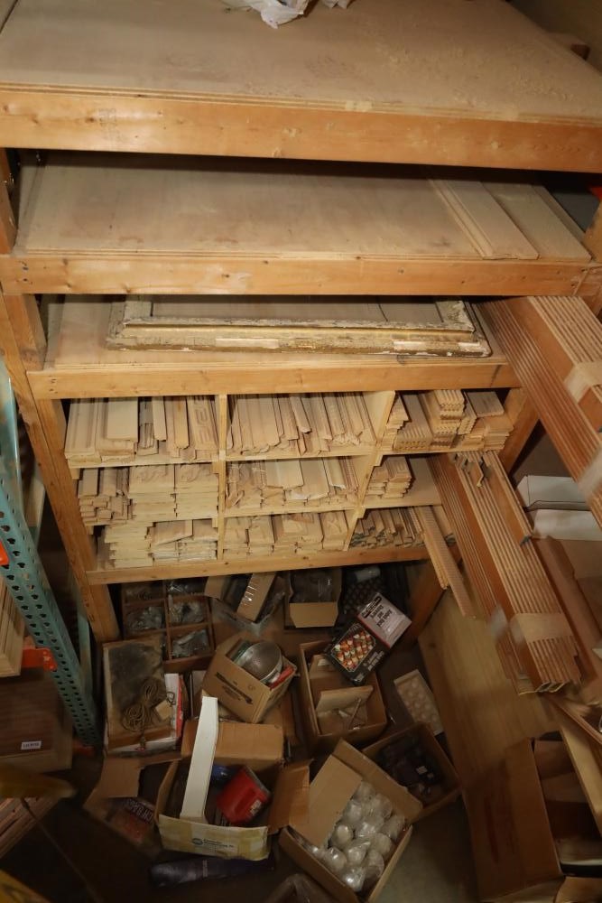 Molding on top wood rack large quantity of varying style, quantity, shape, design and thickness ranging from plain to ornate. Buyer may take as much or as little as they choose. Buyer is responsible for the proper and safe removal to the first disconnect including bringing all the proper tools, equipment, supplies, and help. There will NOT be any help or equipment onsite to assist in removal.