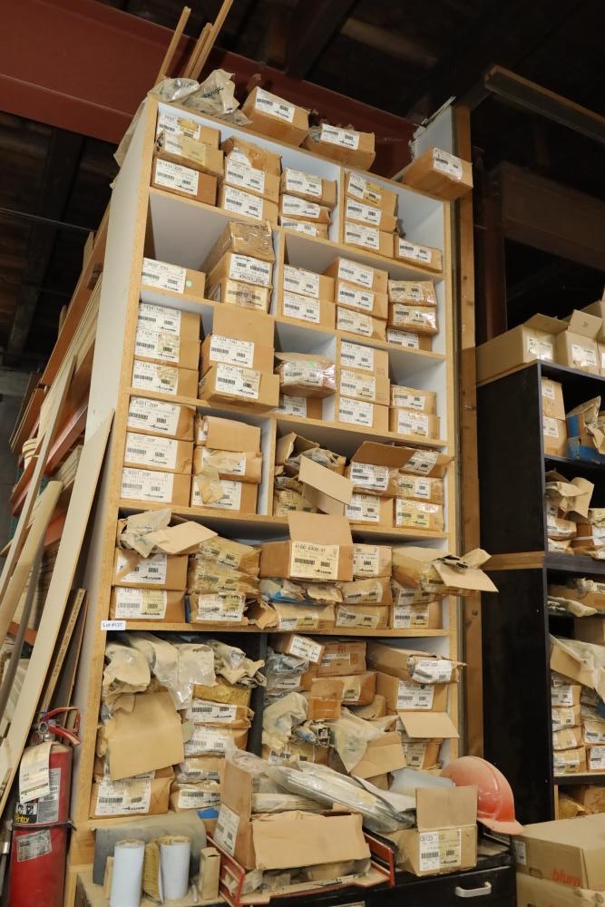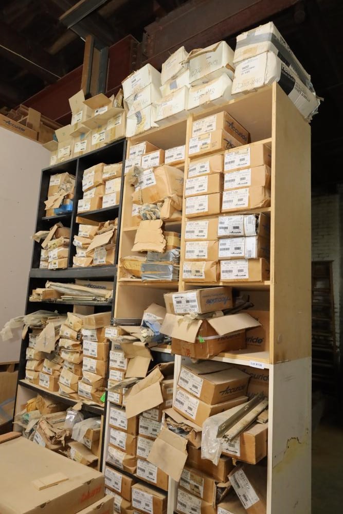 Large quantity of cabinetry hardware including accuride drawer slides part numbers include c3832-b20p, c7434-18d, 4034-18D, C3132-20ECD, etc. Buyer must take all. Buyer is responsible for the proper and safe removal to the first disconnect including bringing all the proper tools, equipment, supplies, and help. There will NOT be any help or equipment onsite to assist in removal.