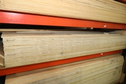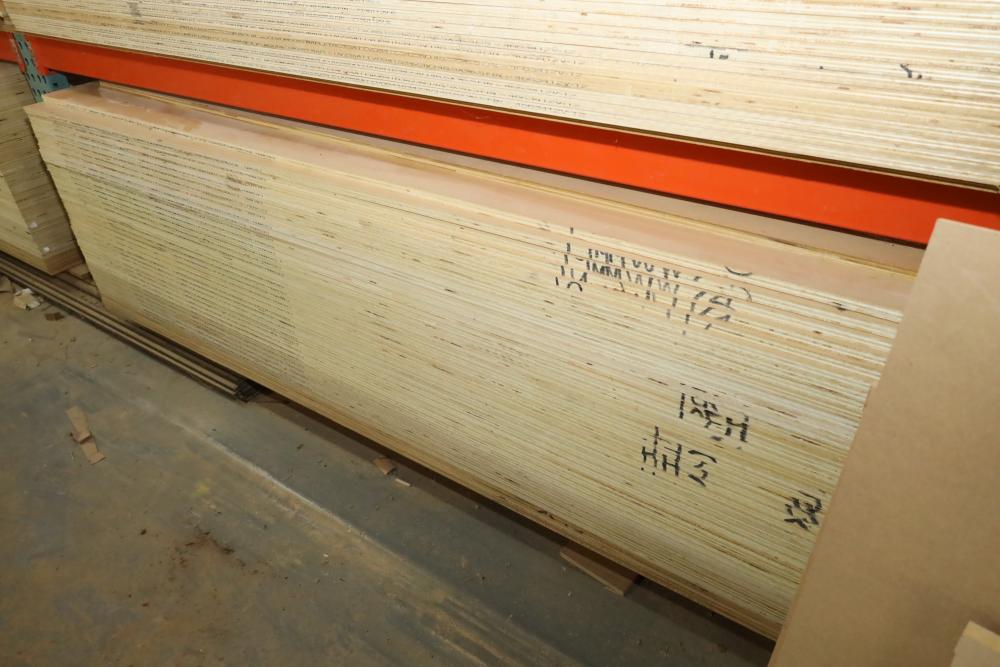 Four shelves of assorted stock including plywood, wood core, MDF, etc. Most sheets 4'x8' varying in thickness from 1/4 to 1 1/2. Buyer must take all. Buyer is responsible for the proper and safe removal to the first disconnect including bringing all the proper tools, equipment, supplies, and help. There will NOT be any help or equipment onsite to assist in removal.