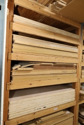 Five shelves of plywood, MDF, and wood stock ranging from 4'x8' sheets to scrap stock, thickness from 1 1/8 to 1/8. Buyer must take all. Buyer is responsible for the proper and safe removal to the first disconnect including bringing all the proper tools, equipment, supplies, and help. There will NOT be any help or equipment onsite to assist in removal.