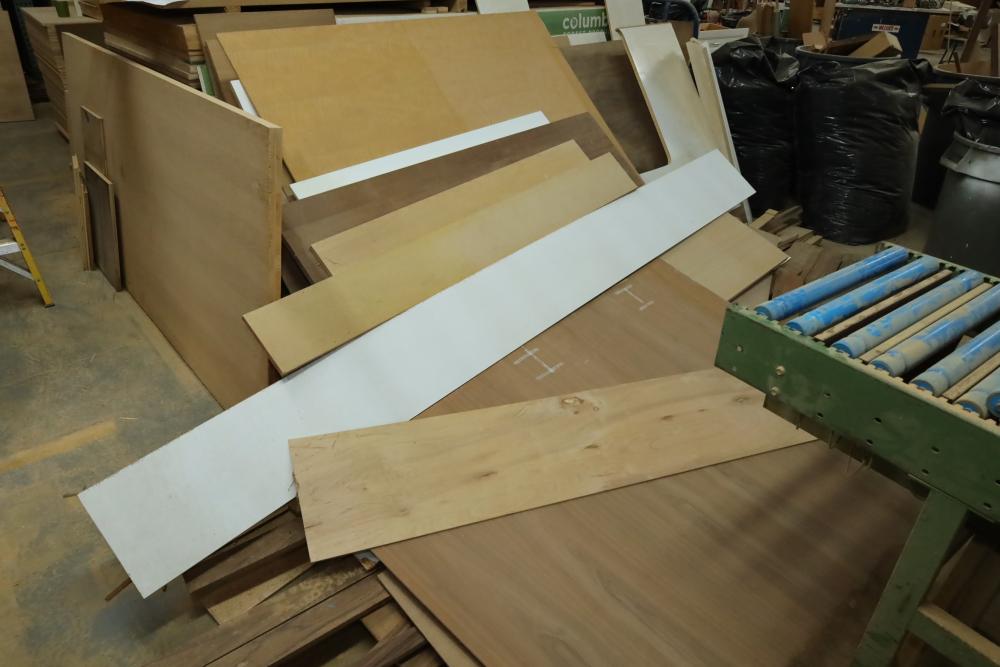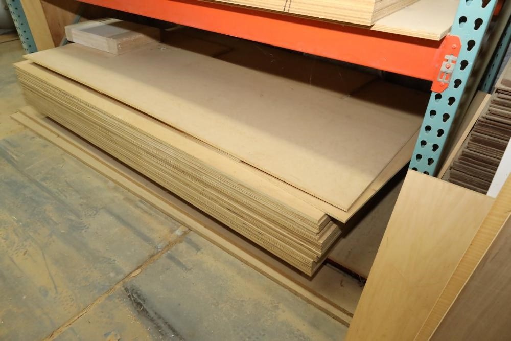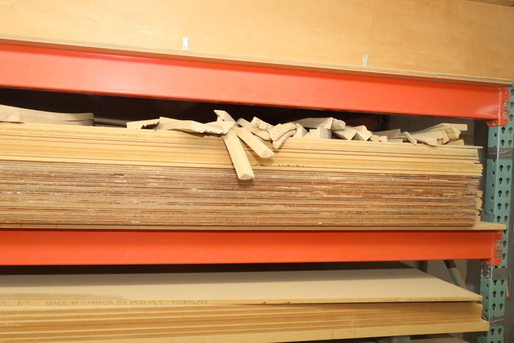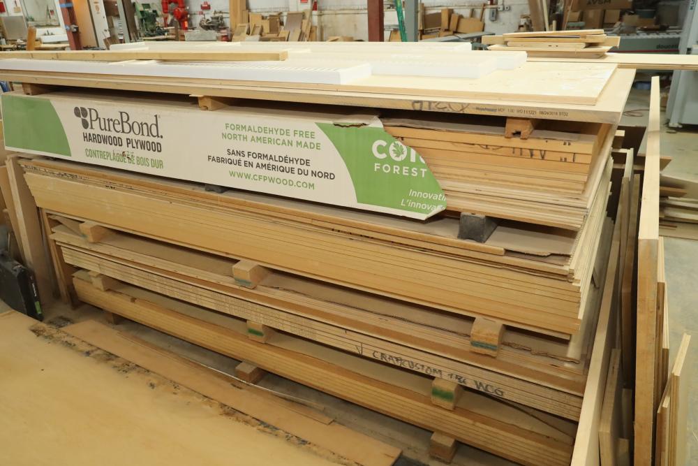 Corner of sheet stock, wood stock and a cabinetry including plywood, lumber core, MDF, and assorted cabinets. Large quantity of 4'x8' sheets stock. Buyer must take all. Buyer is responsible for the proper and safe removal to the first disconnect including bringing all the proper tools, equipment, supplies, and help. There will NOT be any help or equipment onsite to assist in removal.